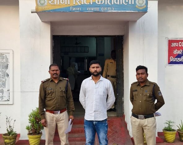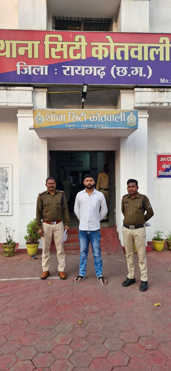 *रायगढ़* । पुलिस अधीक्षक श्री दिव्यांग कुमार पटेल के मार्गदर्शन पर लंबित मामलों के फरार आरोपियों की गिरफ्तारी के लिए अभियान चलाया जा रहा है । इसी तारतम्य में थाना प्रभारी कोतवाली निरीक्षक शनिप रात्रे द्वारा थाने के सभी विवेचकों को फरार आरोपियों की गिरफ्तारी के लिए मुखबीरों से सूचनाएं लेने निर्देशित किया गया है जिसमें लूटपाट मामले के फरार आरोपी चाहत उर्फ आदित्य शुक्ला पिता अरुण शुक्ला उम्र 24 साल निवासी रेलवे स्टेशन साइकिल स्टैंड के बगल गांधी गंज रायगढ़ को आज दोपहर मुखबिर सूचना पर थाने के उप निरीक्षक संजय नाग एवं हमराह स्टाफ द्वारा रेल्वे स्टेशन के पास गिरफ्तार किया गया है । चाहत उर्फ आदित्य शुक्ला द्वारा 18 अक्टूबर 2023 को ढिमरापुर रोड़ रेड क्वीन होटल के सामने अजीत यादव नाम के युवक से जबरन झगड़ा मारपीट कर ₹2000 लूट लिया था । आरोपी चाहत उर्फ आदित्य शुक्ला पर थाना कोतवाली में अपराध क्रमांक 732/2023 धारा 394, 506 आईपीसी के तहत अपराध कायम किया गया था। आरोपी घटना के बाद से लगातार फरार था । गिरफ्तार आरोपी ने रेड क्वीन होटल के पास लूटपाट करना स्वीकार किया है जिससे लूटपाट की रकम ₹2000 बरामद कर जप्ती की गई है । आरोपी चाहत उर्फ आदित्य शुक्ला थाना का गुण्डा बदमाश है, आदतन लूटपाट लड़ाई झगड़े का आदि है पूर्व में भी इसके विरुद्ध कई गंभीर मामले दर्ज हैं ।