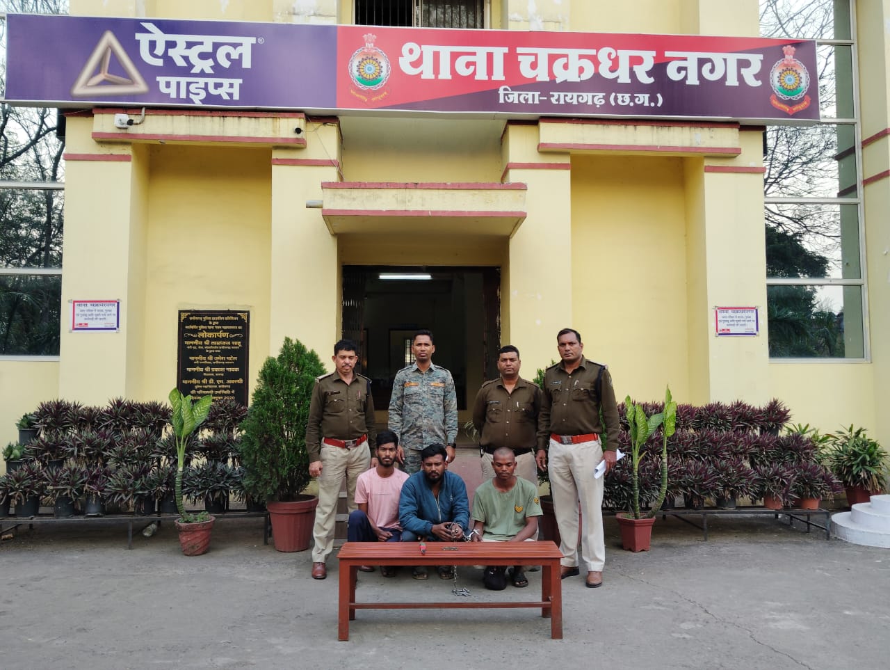 घटना की गंभीरता को देखते हुए थाना प्रभारी चक्रधरनगर निरीक्षक प्रशांत राव आहेर द्वारा वरिष्ठ अधिकारियों को अवगत कराकर तत्काल अपने टीम के साथ फरार आरोपियों की गिरफ्तारी के लिए दबिश दिये और मारपीट में शामिल 03 आरोपी सूरज सिदार, संजय बरेठ, आशीष महेश को हिरासत में लेकर थाना लाये । पूछताछ में आरोपियों ने बताया कि सरस्वती प्रतिमा के विसर्जन के दौरान शिवा खड़िया (आहत) का अपचारी बालक से झगड़ा विवाद हुआ जिस पर अपचारी बालक कृष्णापुर आकर उसे शिवा खड़िया द्वारा मारपीट करना बताया तो गांव के 6 लड़के भेलवाटिकरा गये और शिवा से मारपीट किये थे । आरोपियों के मेमोरेंडम पर घटना में प्रयुक्त हथियार को जप्त गया है । चक्रधरनगर पुलिस द्वारा (1) विधि के साथ संघर्षरत बालक एवं आरोपी- (2) सूरज सरार पिता रामलाल सिदार उम्र 21 साल (3) संजय बरेठ पिता ननकी बरेठ 26 साल (4) आशीष महेश पिता गोविंद सिंह महेश 21 साल तीनों निवासी कृष्णापुर थाना कोतरारोड़ जिला रायगढ़ को गिरफ्तार कर न्यायिक रिमांड पर भेजा गया है । अन्य फरार आरोपियों की सरगर्मी से पतासाजी की जा रही है ।
