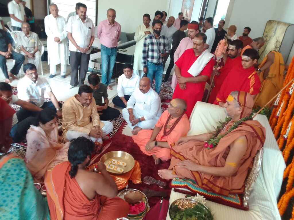 रायपुर:-गाय एवम ब्राह्मण की रक्षा देश वासियों का प्रथम दायित्व है। विश्व कल्याण की भावना हर देशवासी में मौजूद है। हिंदू राष्ट्र बनाने शर्ते तय होनी चाहिए।सनातन धर्म की रक्षा के लिए बच्चो को धर्म की शिक्षा देने आवश्कता है। इन तमाम विषयो पर आज शंकरा चार्य अविमुक्तेश्वरानंद ने राजधानी स्थित सुनील लेंध्रा के निवास स्थान पर चर्चा के दौरान कही। सुनील लेंध्रा के जन्मदिन की पूर्व उनके निवास पधारे शंकरा चार्य अविमुक्तेश्वरानंद का सिग्नेचर होम कॉलोनी वासियों ने भावभीना स्वागत किया। सुनील लेंध्रा ने उपस्थित लोगो के कल्याण व उन पर आशीर्वाद बनाए रखने की कामना की जिसकी सराहना करते हुए शंकराचार्य ने कहा जब मनुष्य सबके कल्याण का सोचता है तो उसका कल्याण सबसे पहले होता है। सभी की प्रार्थना में विश्व कल्याण की भावना शामिल होनी चाहिए। भगवान यदि आपकी प्रार्थना सुन रहा हो तो सबसे असंतुष्ट जनों को संतुष्ट करने की कामना करनी चाहिए उसके बाद ईश्वर से राजा को न्याय के लिए सम्यक दृष्टि दिए जाने की कामना करनी चाहिए। ताकि सभी को बराबर न्याय