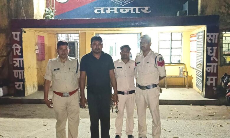 रायगढ़* । पुलिस अधीक्षक श्री दिव्यांग कुमार पटेल द्वारा फरार आरोपियों एवं वारंटियों के होली में उनके गांव आने की संभावना पर सभी थाना प्रभारियों को विशेष तौर पर मुखबीर लगाकर पतासाजी करने निर्देशित किया गया था जिसमें तमनार पुलिस को एक साल पुराने बहुचर्चित पालीघाट सेल्फी पॉइंट के हत्या मामले के फरार आरोपी/ हिस्ट्रीशीटर जयनंद साहू को गिरफ्तार करने में सफलता मिली है ।