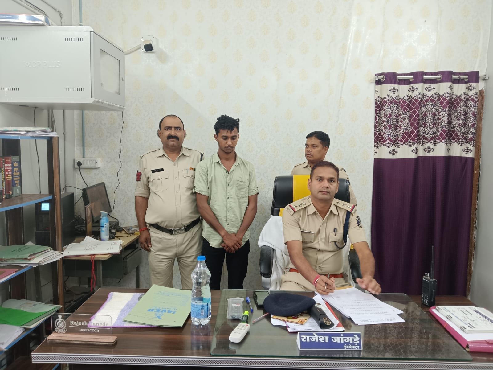 दूसरी ओर आरोपित को अपराध पंजीबद्ध होने की जानकारी मिलने पर फरार हो गया । पुलिस अधीक्षक श्री दिव्यांग कुमार पटेल द्वारा क्राइम मीटिंग पर फरार आरोपी की शीघ्र पतासाजी, गिरफ्तारी के निर्देश एसडीओपी धरमजयगढ़ एवं थाना प्रभारी लैलूंगा को दिया गया था । निर्देशों के पालन में थाना प्रभारी लैलूंगा निरीक्षक राजेश जांगडे द्वारा फरार आरोपी की पतासाजी के लिये आरोपी के गांव आसपास आरोपी की सूचना देने मुखबीर लगाकर रखा गया था । कल मुखबीर सूचना पर आरोपी को उसके गांव के पास से हिरासत में लेकर थाना लाया गया । *आरोपी हर्षित यादव उर्फ हेंमत यादव पिता निधि यादव उम्र 21 साल निवासी ग्राम महुआटिकरा पत्थलगांव, जिला जशपुर (छ0ग0)* से पूछताछ कर महत्वपूर्ण साक्ष्य की जप्ती कर उसकी विधिवत गिरफ्तारी कर रिमांड पर भेजा गया है । आरोपी पतासाजी/गिरफ्तारी में थाना प्रभारी लैलूंगा निरीक्षक राजेश जांगडे, प्रधान आरक्षक संजय यादव और हमराह स्टाफ की अहम भूमिका रही है ।