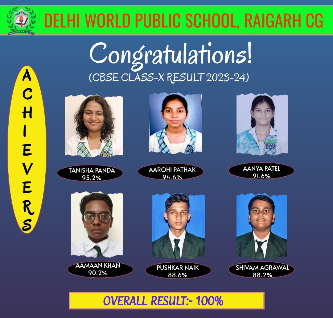 स्कूल सभी सफल छात्रों को हार्दिक बधाई और शिक्षकों एवं कर्मचारियों को उनके अटूट समर्थन के लिए आभार व्यक्त करता है। यह उपलब्धि न केवल छात्रों की शैक्षणिक कौशल को दर्शाती है, बल्कि भविष्य की सफलता के लिए दिल्ली वर्ल्ड पब्लिक स्कूल की प्रतिष्ठा को भी रेखांकित करती है।