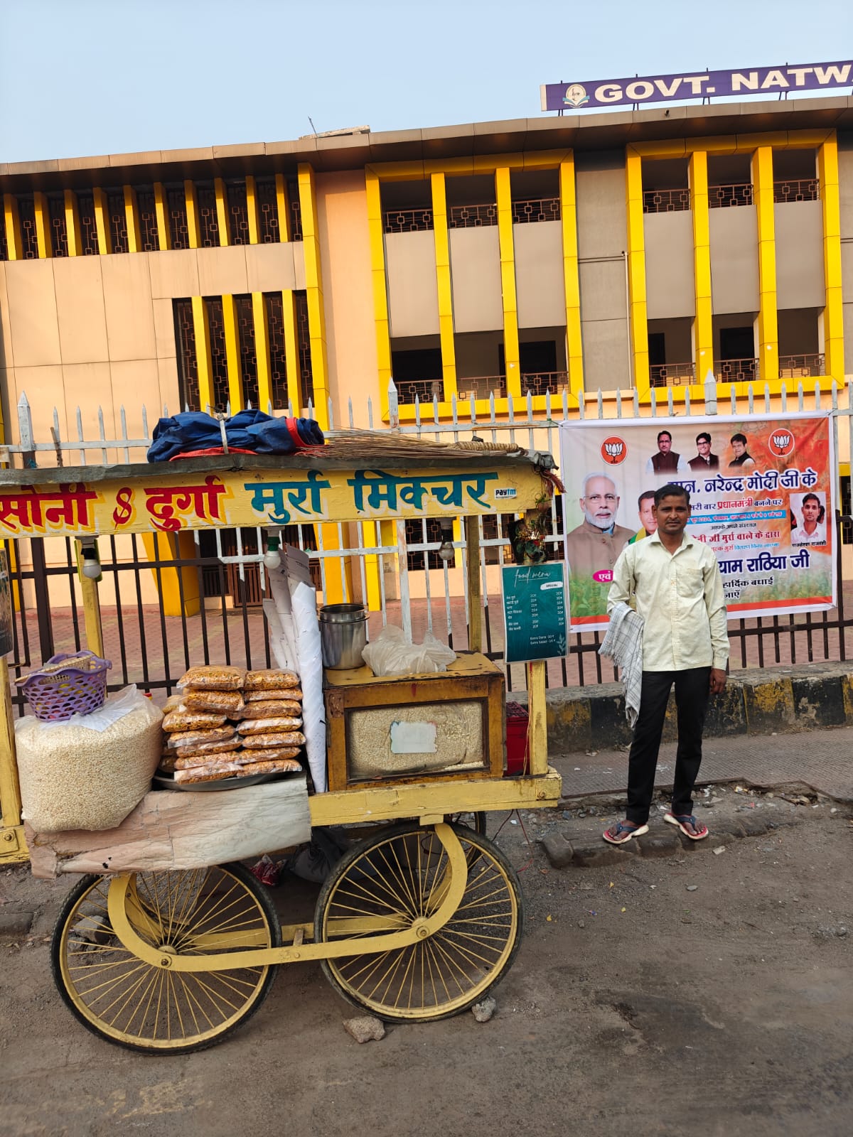 रायगढ़:- ढाई दशक पहले एक दुर्घटना में हाथ गंवाने वाले राज केश्वर राजवंशी सोनी मुर्रा वाले आज मोदी के तीसरी बार प्रधान मंत्री बनने की खुशी में शहर वासियों को निःशुल्क मुर्रा खिला रहे है। दुर्घटना में सोनी का हाथ कट गया था लेकिन उन्होंने हिम्मत नही हारी और पांच सदस्यों वाले इस परिवार ने कभी अपने आंसू लोगो को नहीं दिखाए और जीवन के संघर्ष का सफर स्वयं तय करने का निर्णय लिया। मोदी जी का व्यक्तित्व एक आम आदमी को भी किस तरह प्रभावित कर सकता है सोनी मुर्रा वाला इसकी बानगी है । कर्ज लेकर अपने बेटे पढ़ने हेतु भिलाई भेजने वाले सोनी आज निः शुल्क मुर्रा सिर्फ इसलिए खिला रहे है क्योंकि मोदी जी राजनीति के जरिए देशवासियों की सेवा कर रहे है।ढाई दशक से रोजाना शाम मुर्रा बेचने का काम करने वाले सोनी जी का यह मानना है कि मोदी जी ही देश को तरक्की की राह में ले जा सकते है। उनकी दुकान में आने वाले ग्राहक भी मोदी जी एवम ओपी चौधरी के व्यक्तित्व में बारे में चर्चा करते है यह सब सुनकर उन्हें अच्छा लगता है। ओपी चौधरी जी ने बहुत मुश्किल से पढ़ाई की ओर कलेक्टर बने है और वे हमेशा युवाओं को पढ़ने में लिए बोलते है उनके बेटे और बेटी भी मोदी और ओपी से बहुत प्रभावित रहते है इसलिए उन्होंने आज मुर्रा निशुल्क खिलाने का स्वत निर्णय लिया है। मोदी जी को प्रधान मंत्री बनाने के लिए राधेश्याम राठिया को शहर वासियों ने भरपूर सहयोग किया है इसलिए मोदी जी प्रधान मंत्री बने है । इस खुशी में वे मुर्रा खिला रहे है।
