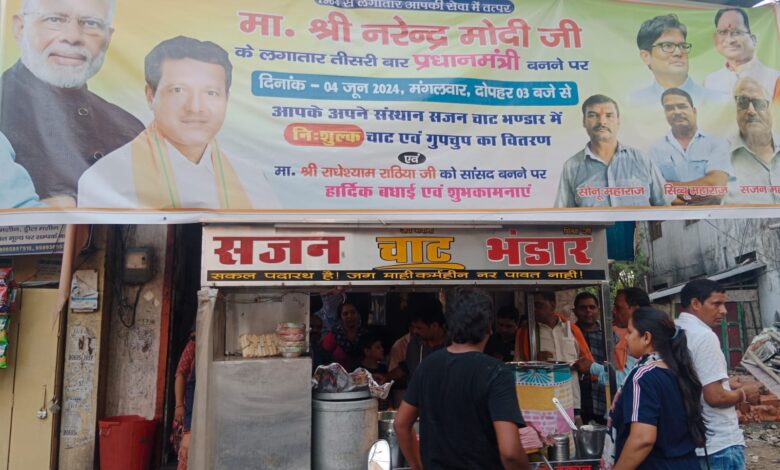 रायगढ़ :- मोदी जी के तीसरी बार प्रधान मंत्री बनने की खुशी का इजहार लोग अपने अपने तरीके से कर रहे इस क्रम में आज हटरी चौक में 1964 से स्थित सजन चाट भंडार मोदी जी के प्रधान मंत्री बनने की खुशी में आम जनता के लिए निःशुल्क कर दिया गया। शिबू एवम सोनू के पिता सजन महाराज मोदी जी के पुनः प्रधान मंत्री बनने पर बेहद खुश है और शहर वासियों को मोदी समर्थन पर मुफ्त में गुप चुप और चाट खिला रहे है। सजन महाराज ने कहा मोदी जैसा नेता कोई दूजा नही है और ओपी चौधरी की कार्यशैली भी मोदी की ही तरह आम जनता के लिए समर्पित है।उनके दुकान में हर वर्ग में लोग आते है विशेष कर महिलाए युवतियां मोदी और ओपी की काबलियत के बारे में खुलकर चर्चा करते है। मोदी जी का जीवन जन सेवा के लिए समर्पित है वे जनता के लिए प्रेरणा स्त्रोत है। आम आदमी को इन दोनो नेताओं से जी जान से मेहनत करने की प्रेरणा मिलती है। मोदी जी की जीत को देशवासियों के सपनो की जीत बताते हुए सजन महाराज कहते है कि मोदी जी की कार्यशैली से वे बेहद प्रभावित है और उनके दीर्घायु की कामना करते है। राम मंदिर के लिए किए गए प्रयासों के सवाल पर सजन महाराज भावुक होकर कहते है वर्षो की तपस्या राजनीति के इस महामानव ने पूरी कर दी । राम मंदिर का सपना जीते जी पूरा हुआ ये सौभाग्य है।