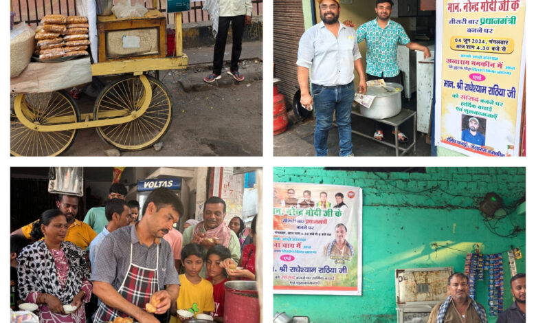 रायगढ़ :- नरेन्द्र मोदी को तीसरी बार प्रधान मंत्री बनाए जाने की खुशी में शहर के लघु व्यवसाइयो द्वारा फ्री में चाट गुपचुप चाय पोहा मुर्रा खिलाये जाने पर ओपी चौधरी द्वारा आभार व्यक्त किया गया है। मीडिया रिपोर्ट्स में इस संबंध की जानकारी आने के बाद विधायक एवम मंत्री श्री ओपी ने सोशल मंच में साझा करते हुए कहा जलाराम नमकीन, लाला चाय,सजन चाट, सोनी मुर्रा वाले छोटे लघु व्यवसाईयो द्वारा अपनी सामग्री निःशुल्क वितरण की गई। यह सब मोदी जी के नेतृत्व में प्रति अटूट विश्वास का प्रतिबिंब है। रायगढ़ के भाई राज केश्वर राजवंशी जी के हौसले को ओपी ने सलाम करते हुए कहा दुर्घटना में हाथ खोने के बाद भी हौसला नहीं खोने को यह अनोखी मिशाल है ऐसे लोग समाज के लिए प्रेरणा दाई होते है। मंत्री ओपी चौधरी ने रायगढ़ वासियों के मोदी जी के प्रति प्रेम, स्नेह और आत्मीयता के लिये आभार भी व्यक्त किया। भाजपा के प्रति आप सभी के प्रेम के सामने स्वय को नतमस्तक करते हुए ओपी ने कहा रायगढ़ में मोदी प्रेम की यह अनोखी मिशाल है।