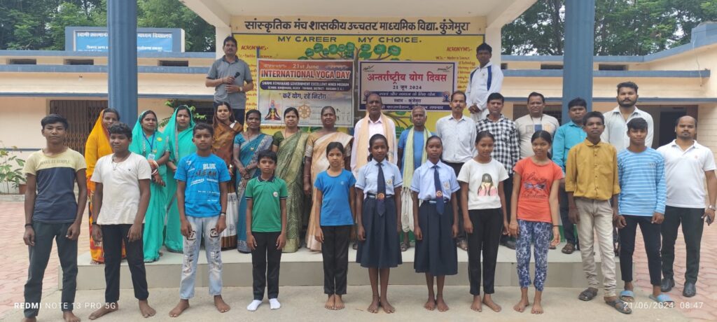 अंतर्राष्ट्रीय योग दिवस का शुभारंभ योग प्रार्थना के साथ किया गया। इसके पश्चात् योग के विस्तृत स्वरूप एवं विश्व योगा दिवस मनाने एवं इसमें भारतवर्ष के योगदान के पृष्ठभूमि पर प्रकाश डाला गया। इसके पश्चात् योगाभ्यास का प्रारंभ शिथिलीकरण अभ्यास के साथ किया गया। इस अवसर पर योगासन के विभिन्न स्वरूप जैसे- ताड़ासन, वृक्षासन, पादहस्तासन, त्रिकोणासन, भद्रासन, वक्रासन, भुंजगासन, कपालभाति, भ्रामरी, उत्तानपादासन, पवनमुक्तासन एवं विभिन्न प्राणायामों के बारे में योगाभ्यास कराया गया और ध्यान, संकल्प एवं शांतिपाठ के साथ योग दिवस का समापन किया गया। ज्ञातव्य हो कि संयंत्र के निकटस्थ विभिन्न ग्रामों में योग दिवस का आयोजन किया गया, जिसमें भारी संख्या में छात्र/छात्राएॅ एवं योग प्रेमी आम जनमानस ने सहर्ष सम्मिलित होकर योग के विभिन्न स्वरूप को जाना एवं इसे अपने जीवन में अपनाने का संकल्प लिया। वहीं कंजेमुरा में कार्यक्रम के अवसर पर श्री एस.के. पटेल, प्रभारी प्राचार्य ने कार्यक्रम को सम्बोधित करते हुए कहा कि योग का तात्पर्य ही जुडना है। आत्मा एवं परमात्मा का
