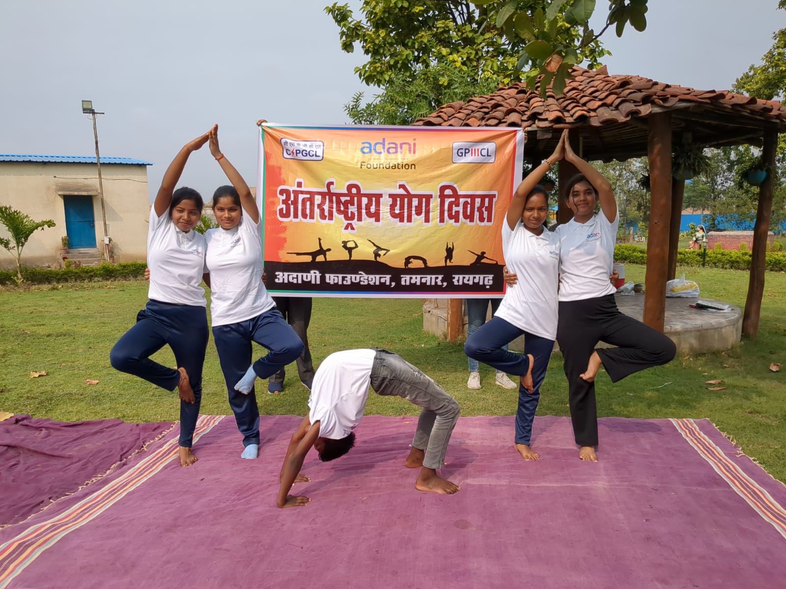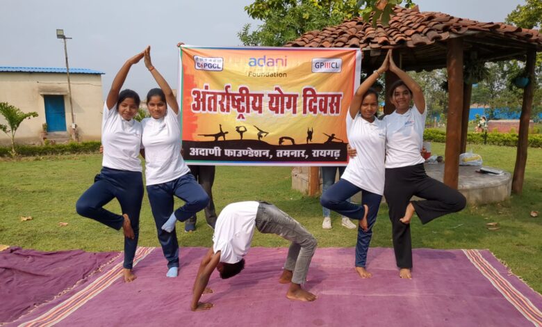 रायगढ़,: अंतरराष्ट्रीय योग दिवस के उपलक्ष्य में 21 जून को अदाणी पॉवर लिमिटेड के ग्राम बड़े भंडार और मिलुपारा में योग दिवस मनाया गया, जिसमें दोनों ब्लॉक के कर्मचारियों एवं अधिकारियों द्वारा योग अभ्यास, सूर्य नमस्कार, ज़ुम्बा डांस और मेडिटेशन किया गया। इसके साथ ही ग्राम बड़े भंडार के स्वामी आत्मानंद हिन्दी मीडियम उत्कृष्ट उच्च माध्यमिक विद्यालय में भी योग दिवस के उपलक्ष्य में कई आयोजन किये गये, जिसमें ग्राम बुनगा, सुपा, अमलीभौना और कठली के 140 से अधिक लोगों ने योग अभ्यास किया। यहाँ योग अभ्यास के अलावा पोस्टर और रंगोली प्रतियोगिता का आयोजन भी किया गया जिसमें, स्कूली छात्राओं ने बढ़-चढ़ कर हिस्सा लिया। साथ ही ग्राम मिलुपारा के आदर्श ग्राम्य भारती विद्यालय में भी 75 लोगों ने योग अभ्यास में हिस्सा लिया