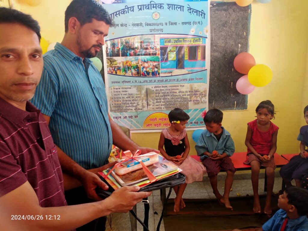 प्राथमिक शाला देलारी समस्त स्टाफ प्रधान पाठक श्री भीखम सिंह सिदार , गोपाल प्रसाद चौहान, श्रीमती स्वाति खलखो द्वारा चावल दाल मटर पनीर की सब्जी एवं मिठाई का वितरण किया गया , नवप्रवेशी छात्रों को कापी पेंसिल एवं स्कूल बैग का वितरण किया गया।