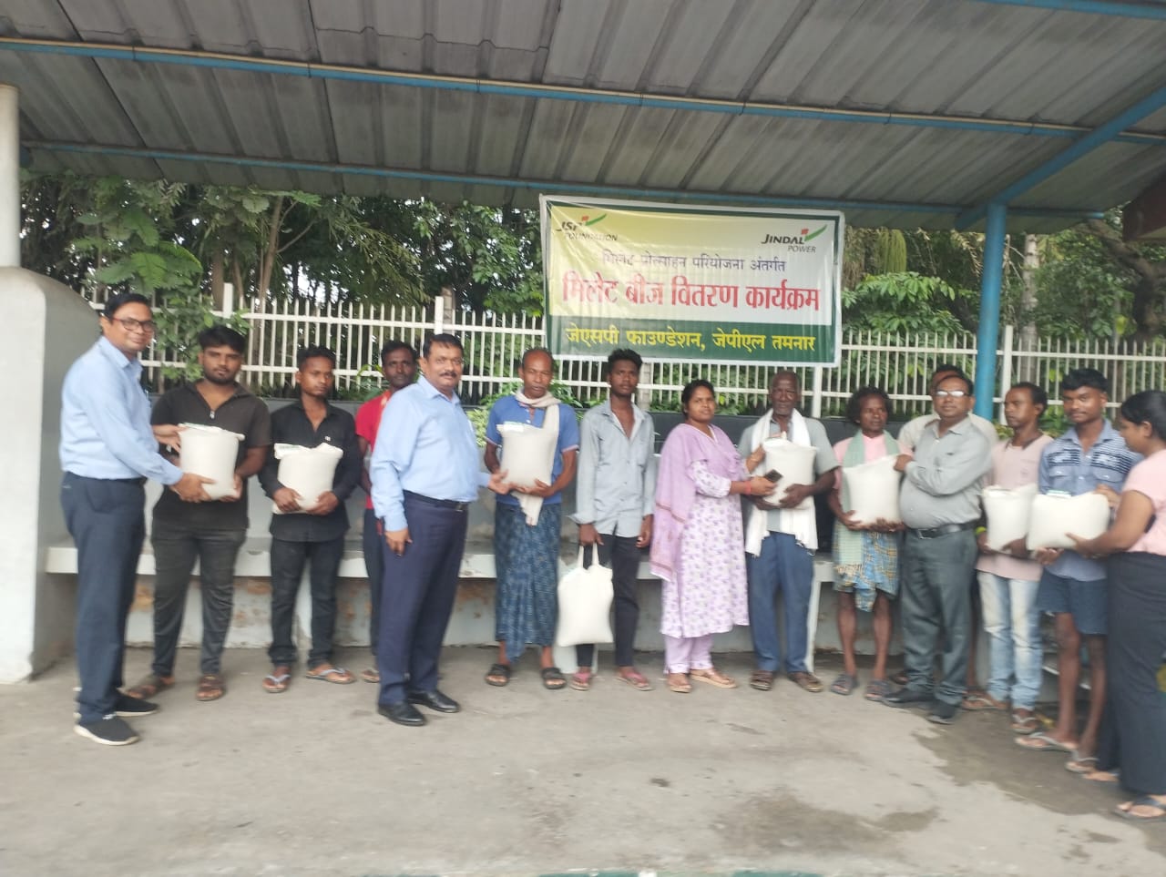 तमनार-जेएसपी फाउण्डेशन, जेपीएल तमनार अपने निगमित सामाजिक उत्तरदायित्व निर्वहन के अंतर्गत क्षेत्रीय किसान भाईयों के सामाजिक एवं आर्थिक विकास सुनिश्चित करने एवं उनको खेती की आधुनिकतम एवं विकसित पद्धतियों से अवगत कराने के लिए सदैव प्रतिबद्ध रही है। इसी क्रम में तमनारांचल के 300 किसान भाईयों को धान की उन्नत खेती ैत्प् तकनीक से अवगत कराने हुए उन्हें धान बीज वितरित किया गया साथ मिलेट प्रोत्साहन परियोजना अंतर्गत 30 किसानों को कोदो, कुटकी, रागी व ज्वार के बीज उपलब्ध कराये गये।