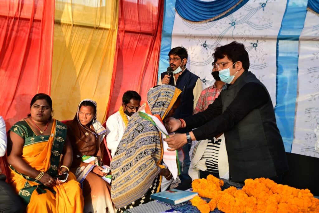 रायगढ़ / छत्तीसगढ़ की भूपेश सरकार की जनकल्याणकारी योजनाओं व रायगढ़ के युवा विधायक प्रकाश नायक के कार्यों से प्रभावित होकर शहर से लगे ग्राम गढ़उमरिया के बोंदाटिकरा मोहल्ले के 100 से अधिक महिला-पुरुषों ने कांग्रेस प्रवेश किया।यहाँ सोमवार की शाम आयोजित कार्यक्रम में विधायक प्रकाश नायक ने इन सभी लोगों को गमछा ओढ़ाकर कांग्रेस में प्रवेश कराया।इस मौके पर विधायक ने उन्हें पार्टी में प्रवेश करने के लिए बधाई दी और कहा कि हमारी पार्टी में आपके शामिल होने से मजबूती मिलेगी।इस कार्यक्रम में बोंदाटिकरा के लोगों में कांग्रेस द्वारा चलाये जा रहे सदस्यता अभियान को लेकर काफी उत्साह देखनें को मिला।
