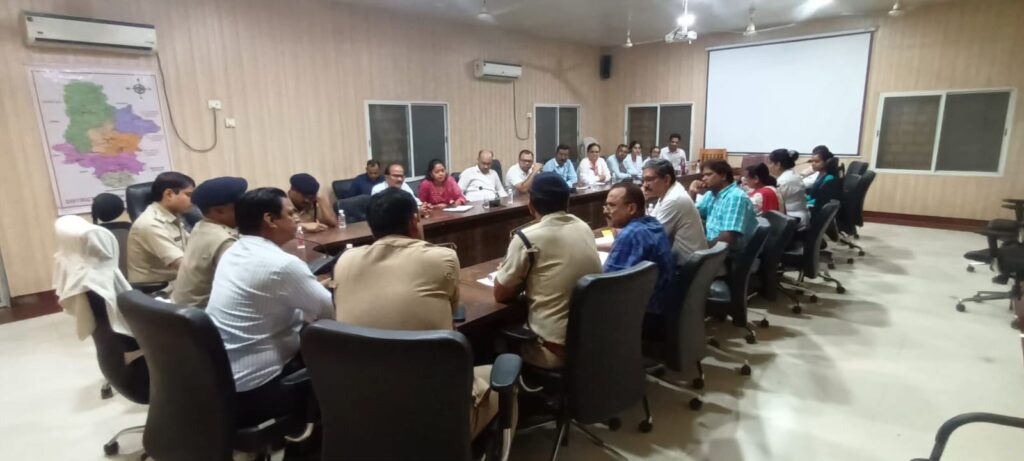 रायगढ़, आज पुलिस कंट्रोल रूम रायगढ़ में जिले के मेडिकल कॉलेज, शासकीय अस्पताल और नर्सिंग कॉलेजों की सुरक्षा व्यवस्था को लेकर एक महत्वपूर्ण बैठक आयोजित की गई। बैठक की अध्यक्षता एडिशनल एसपी आकाश मरकाम और एसडीएम प्रवीण तिवारी ने की जिसमें मेडिकल कॉलेज के डीन, सीएमएचओ, अस्पताल अधीक्षक, चिकित्सक और नर्सिंग कॉलेज प्रमुख शामिल थे।