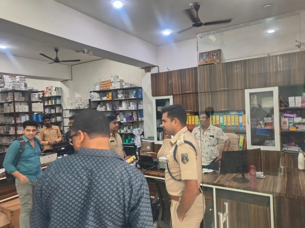 निर्देशों के पालन में एसडीओपी खरसिया श्री प्रभात पटेल के साथ खरसिया पुलिस टीम, ड्रग इंस्पेक्टर के साथ खरसिया क्षेत्र के मेडिकल स्टोर्स की जांच किया गया । इसी क्रम में जिला मुख्यालय में औषधि विभाग और पुलिस टीम शहर के कई मेडिकल स्टोर्स में स्टाक, एक्सपायरी व प्रतिबंधित दवाइयां की जांच की गई। इस दौरान मेडिकल स्टोर संचालकों को लोक स्वास्थ्य एवं सुरक्षा को ध्यान में रखते हुए नशीली दवाओं की बिक्री नहीं करने और बिना चिकित्सक पर्ची के प्रतिबंधित