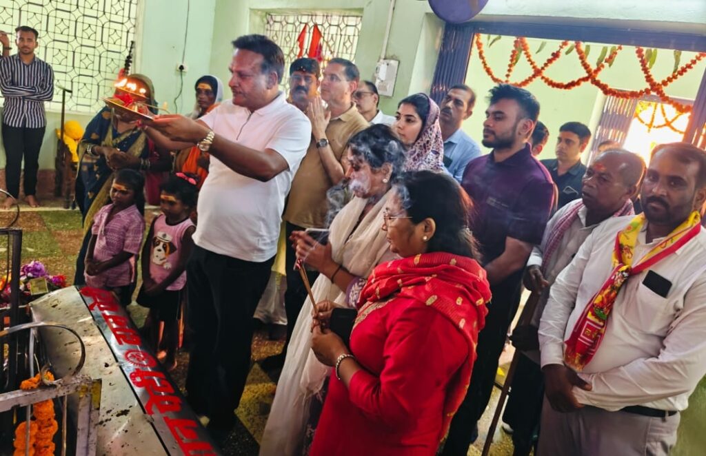 रायगढ़ :- सन 1993 से ग्राम लेंध्रा में आयोजित होने वाले राधा अष्टमी के तीन दिवसीय कार्यक्रम में मशहूर समाजसेवी सुनील लेंध्रा आज सपरिवार शामिल हुए। धर्मपत्नी सीमा बबीता भाभी समधी मनोज ज्येष्ठ पुत्र वैभव एवं पुत्र वधु के साथ सुनील लेंध्रा ने प्राचीन मंदिर में प्राण प्रतिष्ठित राधा रानी की आराधना करते हुए अपने गृह ग्राम वासियों की खुशहाली का आशीर्वाद मांगा एवम आने वाले दिनों में अच्छी फसल के लिए राधा रानी से कामना की। अपने गृह ग्राम लेंध्रा में राधा अष्टमी के दिन होने वाले इस परंपरा गत समारोह में सुनील अवश्य शामिल होते है। भंडारे में कतार बद्ध होकर परिवार जनों के साथ प्रसाद ग्रहण में बाद राधा रानी समिति ने परिवार जनों का मंच में सम्मान भी किया। इस दौरान राधा रानी समिति ने कहा राधा रानी की