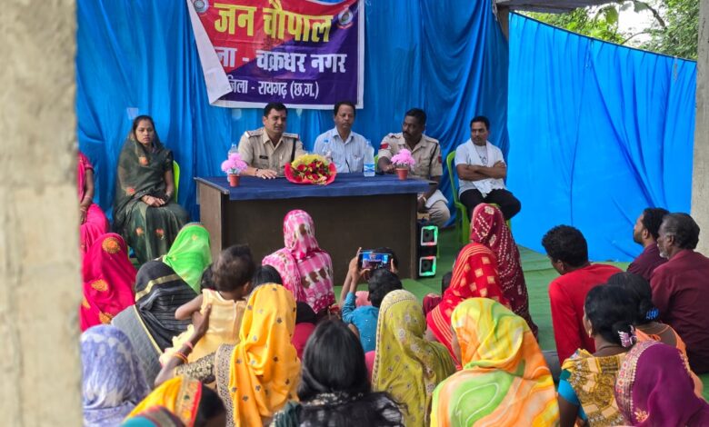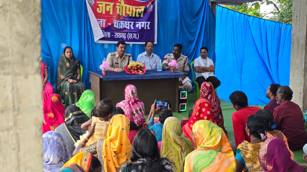 रायगढ़* । पुलिस अधीक्षक श्री दिव्यांग कुमार पटेल के दिशा-निर्देशन में सामुदायिक पुलिसिंग के तहत थाना प्रभारीगण अपने-अपने क्षेत्रों में लगातार जागरूकता कार्यक्रम आयोजित कर रहे हैं। इन कार्यक्रमों का उद्देश्य साइबर अपराध, महिला सुरक्षा, यातायात नियमों और अन्य सामाजिक मुद्दों के बारे में जागरूकता बढ़ाना है। इसी कड़ी में आज चक्रधरनगर थाना प्रभारी निरीक्षक प्रशांत राव आहेर और उनके स्टाफ ने ग्राम लामीदरहा में पुलिस जन चौपाल का आयोजन किया, जिसमें गांव के पंच, सरपंच, और गणमान्य नागरिक उपस्थित रहे।