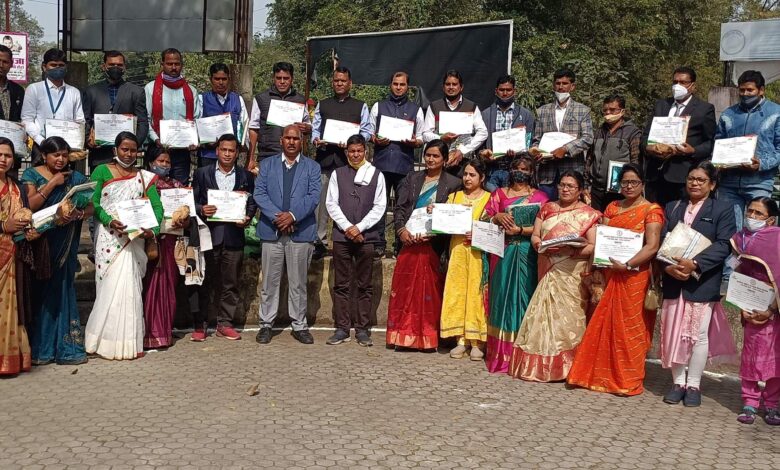 रायगढ़, / 73 वें गणतंत्र दिवस के अवसर पर जिला पंचायत अध्यक्ष श्री निराकार पटेल ने जिले के 36 श्रेष्ठ शिक्षक-शिक्षिकाओं को सम्मानित किया। श्री पटेल ने सभी चयनित शिक्षकों को बधाई एवं शुभकामनाएं देते हुए शिक्षा के क्षेत्र में रायगढ़ जिले के गौरवमयी परम्परा को बरकरार रखने के लिए आग्रह किया। इस मौके पर जिला शिक्षा अधिकारी श्री आर.पी.आदित्य भी उपस्थित रहे।