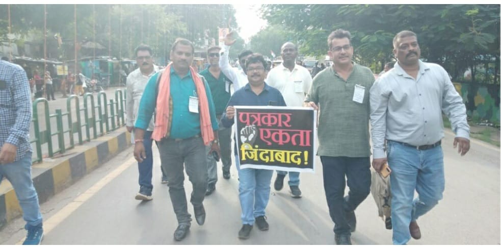 रायगढ़। पत्रकार सुरक्षा कानून को लेकर के जहां बुधवार को रायपुर के राज्यपाल भवन स्थित अकाशवाणी चौक में सयुक्त पत्रकार महासभा के बैनर तले एक दिवसीय धरना प्रदर्शन किया गया । वहां पूरे प्रदेश के पत्रकार एकत्रित होकर पत्रकार सुरक्षा कानून की मांग की है। वही प्रदेश भर के सभी पत्रकार संगठनो के पदाधिकारियो ने विशाल रैली निकाल कर मुख्यमंत्री के नाम ज्ञापन सौपा।