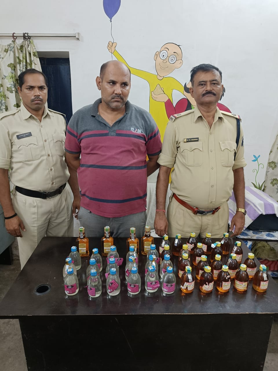 पुलिस द्वारा मौके पर भोजनालय की तलाशी लेने पर, काउंटर के नीचे एक प्लास्टिक बोरी में रखी गई कुल 41 पाव शराब बरामद की गईं। इसमें 37 पाव सीलबंद रोमियो देशी मदिरा प्लेन, शोले मसाला देशी मदिरा और 4 पाव सीलबंद मेकडायल नंबर-1 व्हिस्की अंग्रेजी शराब शामिल थी। साथ ही आरोपी संजय गुप्ता से ₹220 की शराब बिक्री की रकम भी बरामद की गई।