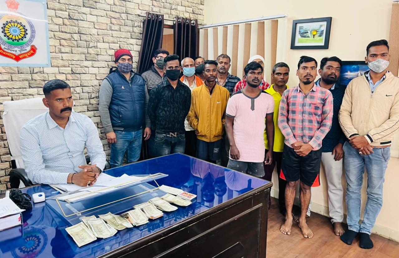 *रायगढ़* । एसपी अभिषेक मीना के दिशा निर्देशन पर पिछले तीन दिनों से नगर निरीक्षक मनीष नागर जिले में सट्टा-पट्टी लिखने वालों पर कार्रवाई किया जा रहा है । कल क्रिकेट सट्टा पर कार्रवाई के बाद आज दिनांक 27.01.2022 को कोतवाली पुलिस की टीम मुखबिर सूचना पर *कोतरारोड़ राजीवनगर, संजय मार्केट, नवागढ़ी तालाब पार, इंदिरानगर चौक* पर दबिश देकर रेड कार्रवाई किया गया । जिसमें *कोतरारोड़ राजीवनगर पर*- अमित श्रीवास पिता राम भरोस श्रीवास उम्र 21 वर्ष, हेमंत देवांगन पिता त्रिलोचन देवांगन, सागर विश्वकर्मा पिता सुंदरलाल को सट्टा-पट्टी एवं सट्टा पर लगे नकद रूपयों के साथ पकड़ा गया । *संजय मार्केट पर*- राजेश साहू पिता सूरज जूटमिल सामने गली, उमेश मिश्रा पिता राम खिलावन मिश्रा निवासी कोतरारोड़, पंकज डालमिया पिता मूलचंद डालमिया पहाड़ मंदिर रायगढ़, दीपक पेशवानी पिता नारायण पेशवानी सिंधी कालोनी पक्की खोली, निताई विश्वास पिता रमेन्द्र विश्वास महरापारा गोगामिल तथा *नवागढ़ी तालाब के पास* -अमर बेहरा पिता पूरन बेहरा, बसंत कुमार यादव रामयादव मधुबनपारा, विकास सारथी को सट्टा-पट्टी लिखित पकड़ा गया । *इंदिरानगर चौंक पर*- हेमंत दुबे महेत्तर दुबे, किशन यादव पिता समयलाल यादव इंदिरानगर को सट्टा-पट्टी के साथ पकड़ा गया है । आज अभियान दौरान पकड़े गये *14 आरोपियों से कुल 33500 रूपये नकदी एवं 50 हजार रूपये से अधिक की सट्टा-पर्ची* की जप्ती की गई है ।