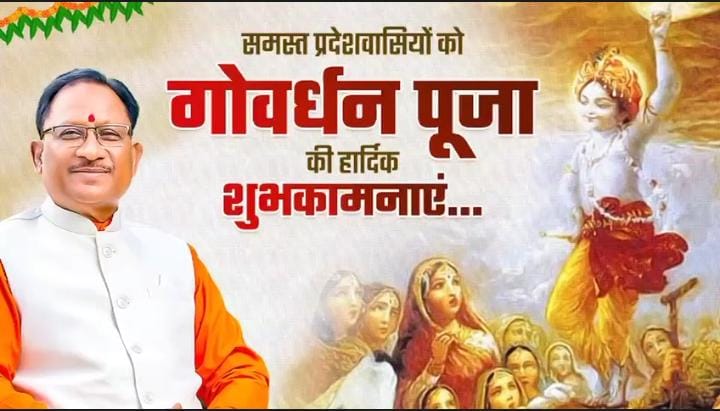 रायपुर, 01 नवंबर 2024/ मुख्यमंत्री विष्णु देव साय ने प्रदेशवासियों को 02 नवम्बर गोवर्धन पूजा के अवसर पर बधाई और शुभकामनाएं देते हुए प्रदेशवासियों की सुख-समृद्धि और खुशहाली की कामना की है। मुख्यमंत्री ने अपने शुभकामना संदेश में कहा है कि गोवर्धन पूजा या अन्नकूट लोकजीवन से जुड़ा त्यौहार है। छत्तीसगढ़ में इस दिन गौ पूजन की परम्परा है।