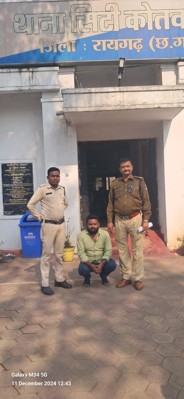 , रायगढ़ । कोतवाली पुलिस ने दुष्कर्म आरोपी मनीष कांत हेमराज उर्फ मोनू (38 वर्ष) को हिरासत में लेकर न्यायिक रिमांड पर भेज दिया है। आरोपी पर महिला से प्रेम प्रसंग बनाकर शारीरिक शोषण करने, गाली-गलौज, धमकी देने और वीडियो-फोटो वायरल करने की धमकी का आरोप है।