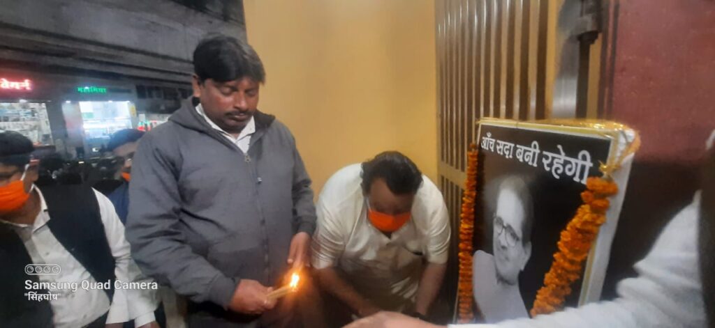 स्व रोशनलाल अग्रवाल की प्रथम पुण्यतिथि पर प्रेस क्लब के तत्वाधान में स्थानीय रामनिवास टॉकीज चौक पर स्थित हनुमान मंदिर में कार्यक्रम आयोजित किया गया। सर्वप्रथम हनुमान जी की प्रतिमा के समक्ष दीप प्रज्ववलित किया गया ततपश्चात स्व रोशनलाल अग्रवाल के तैल चित्र पर पुष्प अर्पित कर उन्हें अपनी भावभीनी श्रद्धाजंलि अर्पित की गई। वही इस अवसर पर हनुमान चालीसा का पाठ भी किया गया। प्रेस क्लब के अध्यक्ष हेमंत