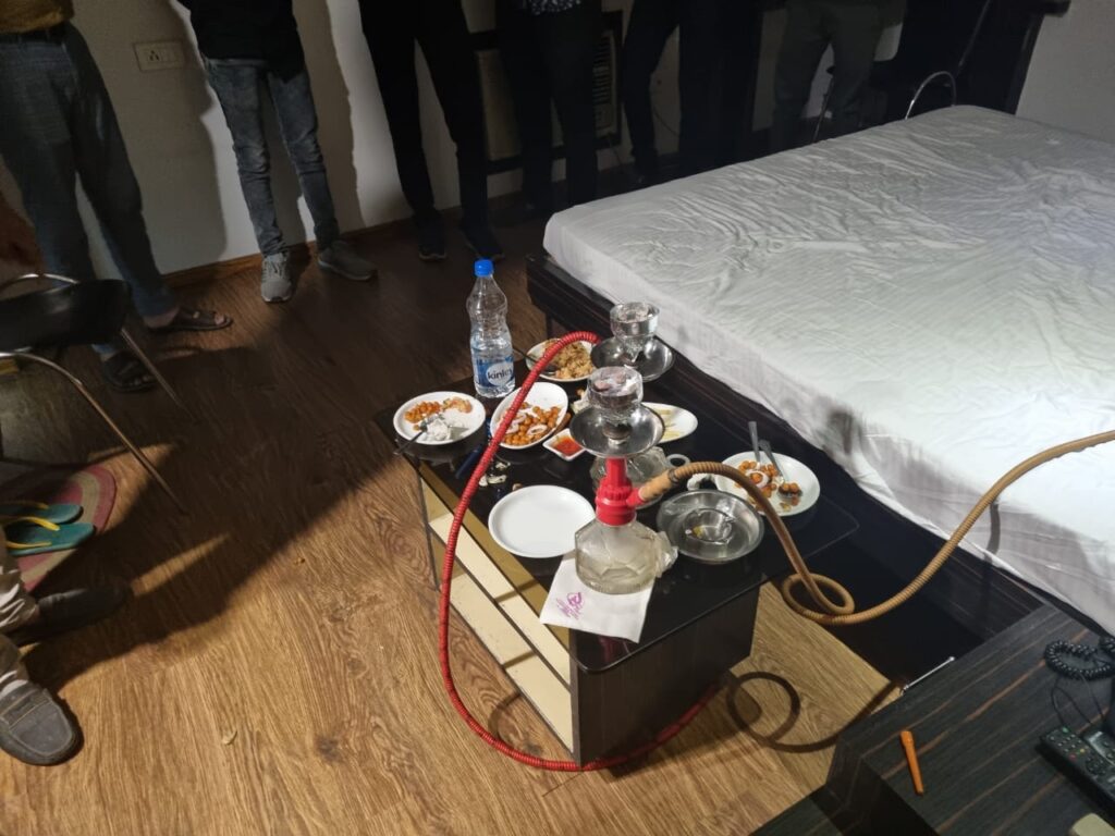 सूचना पर तत्काल थाना प्रभारी कोतवाली निरीक्षक मनीष नागर के साथ कोतवाली व कोतरारोड़ थाना की संयुक्त पुलिस पार्टी द्वारा होटल पिंक पर्ल में रेड किया गया, जहां उपस्थित मिले हॉटल मैनेजर जागेश्वर सदावर्ती (उम्र 29 साल) निवासी बड़े नवापारा थाना सरिया से पूछताछ कर हॉटल की सघनता से तलाशी ली गई, जहां 4 नग हुक्का पॉट मिला जिससे तंबाकू की गंध आ रही थी । हुक्का पीने वाले पुलिस की रेड के पहले भाग गए थे। हॉटल मैनेजर को पुलिस टीम द्वारा थाना कोतरारोड़ लाया गया है जिसके विरुद्ध कोप्टा एक्ट 2003 की धारा 4/21, 6/24 के तहत कार्यवाही किया गया है ।
