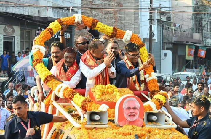 विष्णु देव साय के रोड शो से चुनावी फिजा बदली