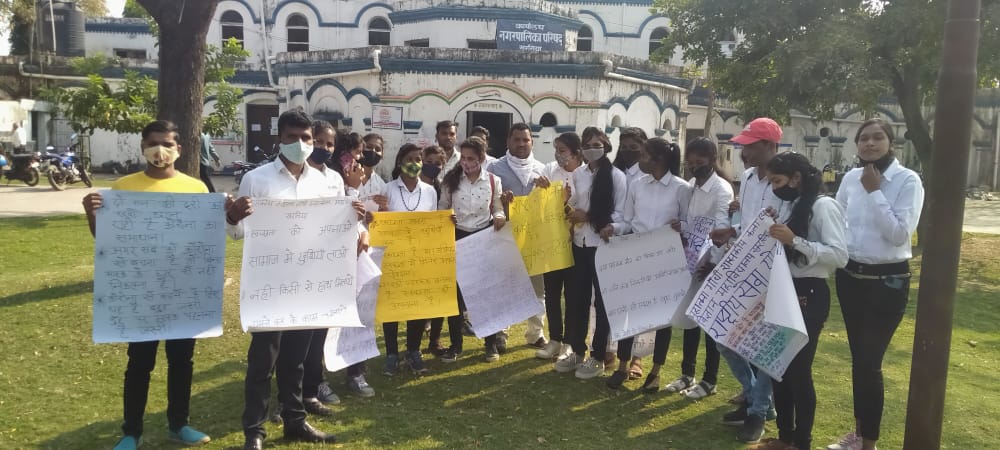 नुक्कड़ नाटक के जरिए NSS के छात्र छात्राओं ने किया लोगों को कोरोना से जागरूक