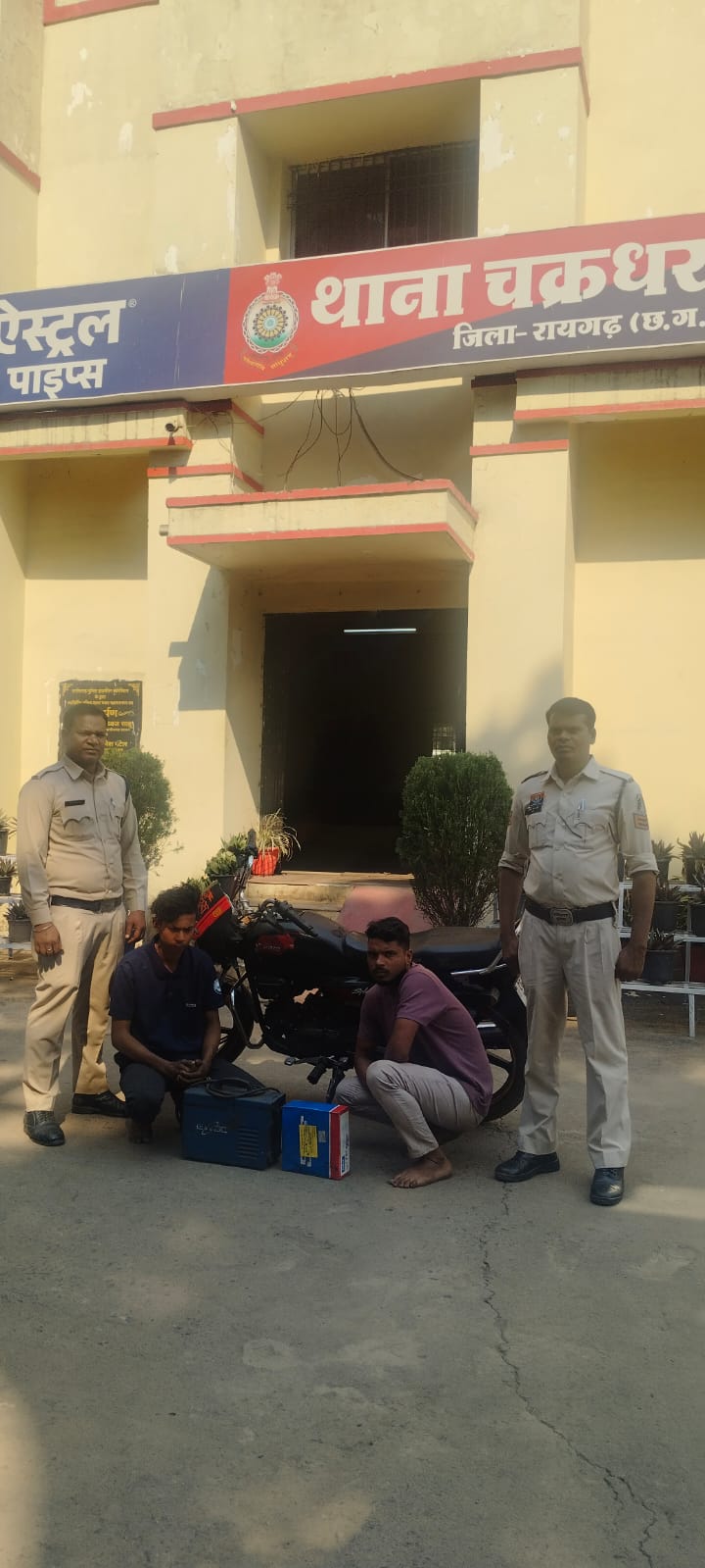 रायगढ़। चक्रधरनगर पुलिस ने एमएसपी प्लांट से वेल्डिंग मशीन और मशीनरी पार्ट्स चोरी करने वाले दो आरोपियों को गिरफ्तार कर चोरी का सामान और घटना में प्रयुक्त बाइक बरामद की है। गिरफ्तार आरोपियों में एक पूर्व प्लांट कर्मचारी भी शामिल है। एमएसपी कंपनी जामगांव के सुरक्षा अधिकारी मुरलीधर महापात्रे ने कल रिपोर्ट दर्ज कराई थी कि 2 मार्च 2025 को कंपनी के सीपीपी वर्कशॉप से वेल्डिंग मशीन और अन्य सामग्री चोरी हो गई थी। सीसीटीवी फुटेज जांच में आरोपी दीपक भोय (20 वर्ष) निवासी जूनाडीह, जो पहले