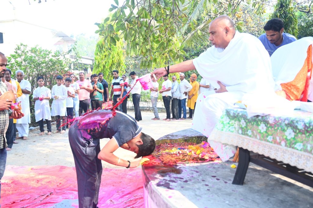 दिन प्रातः से ही शहर वासी गुरु चरणों में गुलाल अर्पित करने जुटने लगे। अघोर परम्परा से जुड़े अनुयाई बनोरा आश्रम में गुरू चरणों में गुलाल अर्पित कर शीश नवाने के बाद ही होली खेलने की शुरूवात करते हैं । शुक्रवार की सुबह से ही सभी राजनीतिक दलों से जुड़े नेता, पार्षद, समाजसेवी व्यापारिक धार्मिक संस्थाओं से जुड़े पदाधिकारी मीडिया से जुड़ी हस्तियों सहित गणमान्य लोग कतार बध्द हो धैर्य पूर्वक