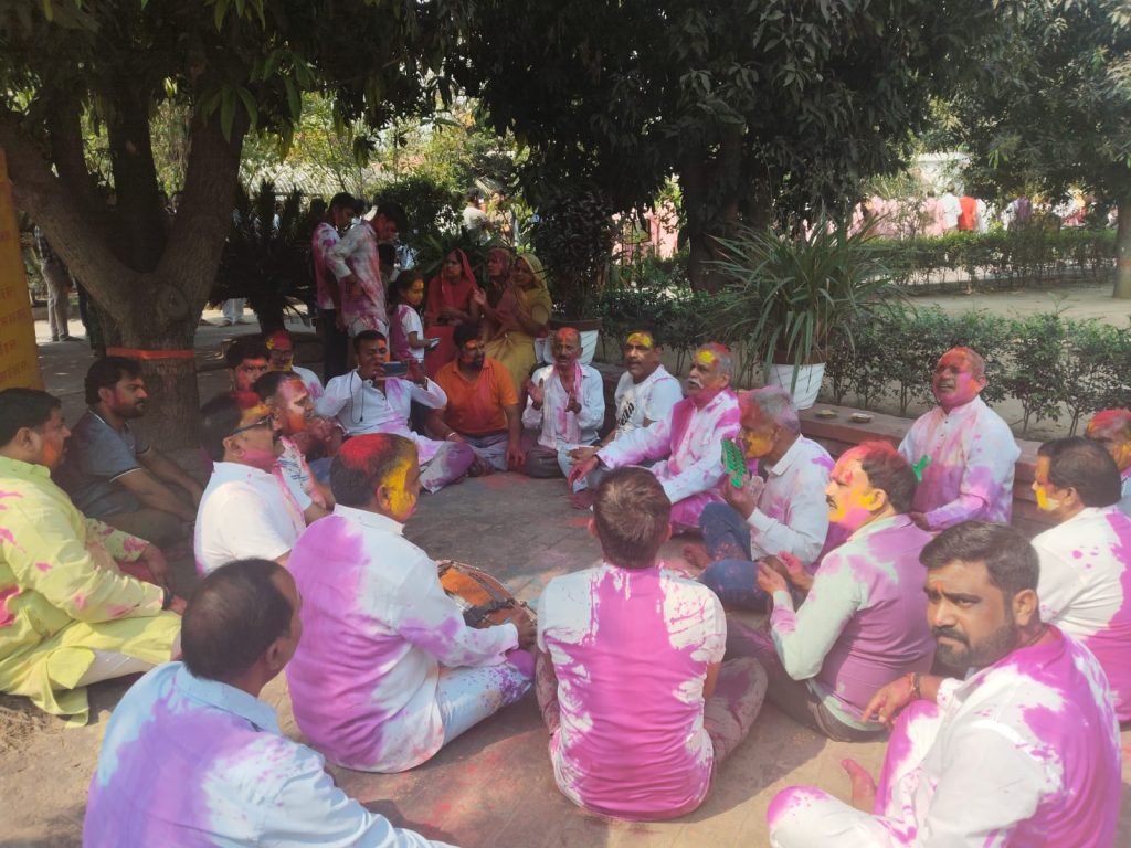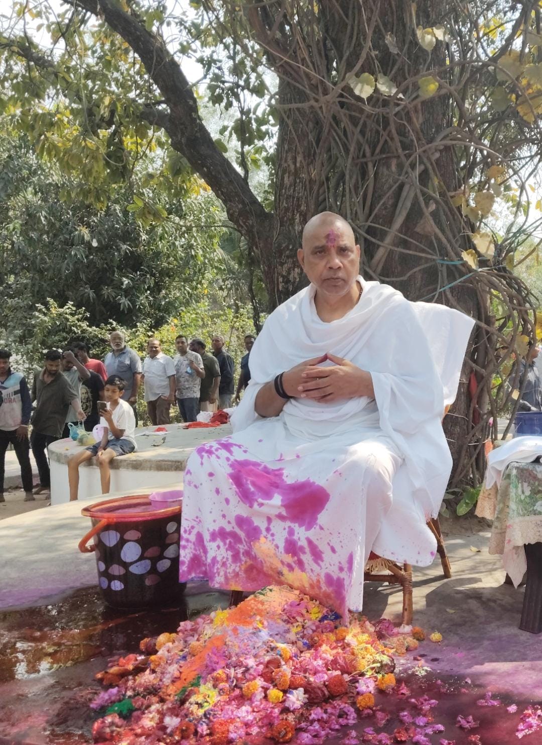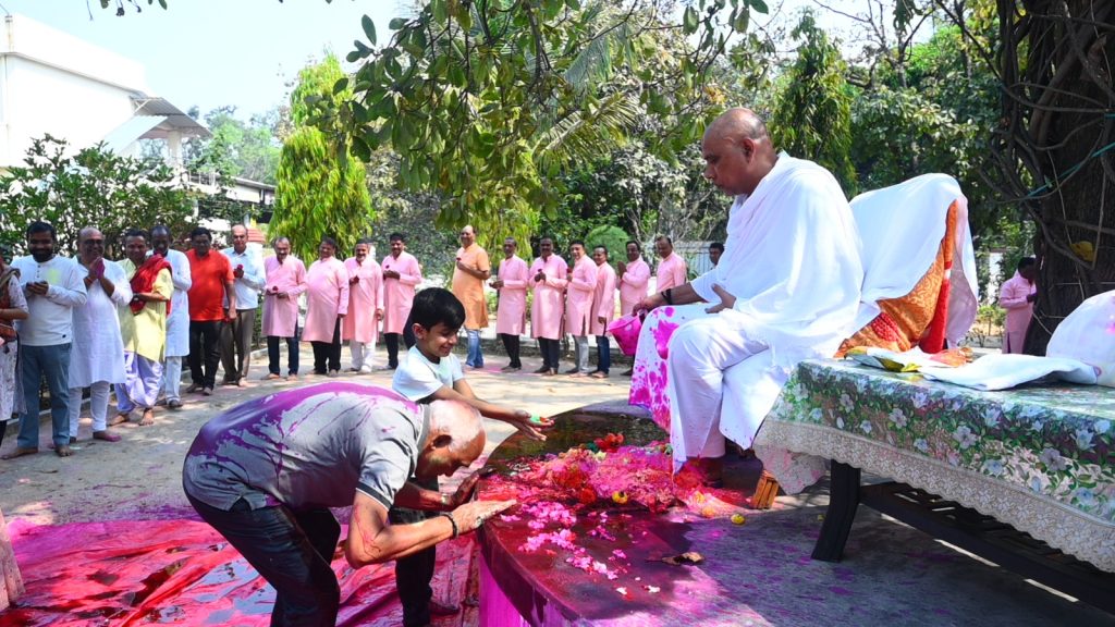 अपनी अपनी पारी की प्रतीक्षा करते देखे गए। आश्रम के प्रवेश द्वार में ही भजन मंडली उत्साह से फाग गीत गा रही थी। आश्रम परिसर में वृक्ष के नीचे बाबा प्रियदर्शी ने कतार बद्ध अनुयाइयों से गुलाल स्वीकार करते हुए सभी पर आशीर्वाद स्वरूप रंग डाल रहे थे। होली में दिए गए संदेश में पूज्य पाद बाबा प्रियदर्शी राम जी ने कहा अपने अंदर मौजूद नकारात्मक विचारों को दूर करते हुए किसी के प्रति भी दुश्मनी का भाव नहीं रखे । मन मंदिर में स्थापित आत्मा को परमात्मा का अंश बताते हुए कहा हृदय के मंदिर में भी