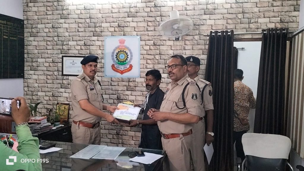 रायगढ़, । समाज के लिए कुछ करने की भावना रखने वालों को जब पहचान और सम्मान मिलता है, तो यह न केवल उनका उत्साह बढ़ाता है बल्कि दूसरों के लिए भी प्रेरणा बनता है। इसी सोच को साकार करते हुए रायगढ़ पुलिस अधीक्षक श्री दिव्यांग पटेल के मार्गदर्शन में नगर पुलिस ने एक विशेष कार्यक्रम आयोजित कर समाज के नायकों को सम्मानित किया। इस मौके पर नगर कोतवाल सुखनंदन पटेल, उप निरीक्षक ऐनु देवांगन ने थाना परिसर में मेधावी छात्र-छात्राओं, सड़क दुर्घटनाओं में घायलों की मदद करने वाले ‘गुड सेमेरिटन’, गौसेवा में योगदान देने वाले नागरिकों और पुलिस मित्रों को प्रशस्ति पत्र एवं प्रतीक चिन्ह देकर सम्मानित किया।