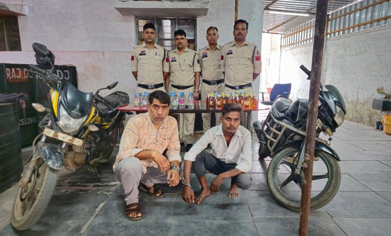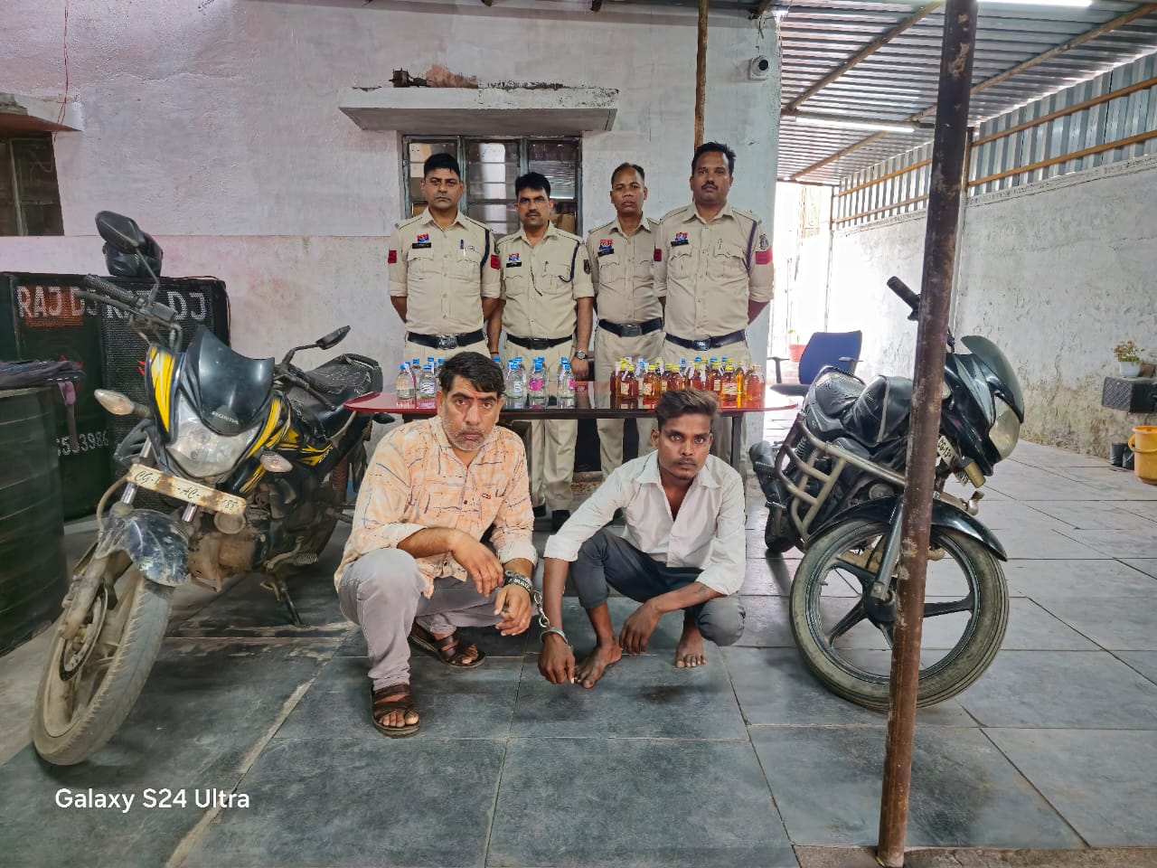 , रायगढ़ । पुलिस अधीक्षक श्री दिव्यांग कुमार पटेल के निर्देश और अतिरिक्त पुलिस अधीक्षक श्री आकाश मरकाम, नगर पुलिस अधीक्षक श्री आकाश शुक्ला के मार्गदर्शन में अवैध शराब कारोबारियों पर शिकंजा कसते हुए थाना जूटमिल प्रभारी निरीक्षक प्रशांत राव के नेतृत्व में आज जूटमिल पुलिस ने एक के बाद एक दो बड़ी कार्रवाई को अंजाम दिया। मुखबिर की सटीक सूचना पर अलग-अलग स्थानों में की गई दबिश में दो आरोपियों को शराब परिवहन करते रंगेहाथ पकड़ा गया। दोनों मामलों में कुल 62 नग देशी शराब और परिवहन में प्रयुक्त दो मोटरसाइकिल जब्त कर धारा 34(2), 59-क आबकारी एक्ट के तहत कार्रवाई की गई।