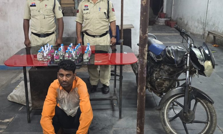 रायगढ़ । पुलिस अधीक्षक दिव्यांग पटेल के दिशा-निर्देशन में अवैध शराब के विरुद्ध चलाए जा रहे अभियान के तहत जूटमिल पुलिस ने शनिवार 13 अप्रैल को एक और कार्रवाई को अंजाम दिया। मुखबिर की सूचना पर दुर्गा चौक मिट्ठुमुड़ा में घेराबंदी कर मोटर साइकिल पर शराब की तस्करी कर रहे एक आरोपी को रंगे हाथ पकड़ा गया, जिसके कब्जे से देशी शराब के 30 पाव सहित बाइक जब्त की गई।