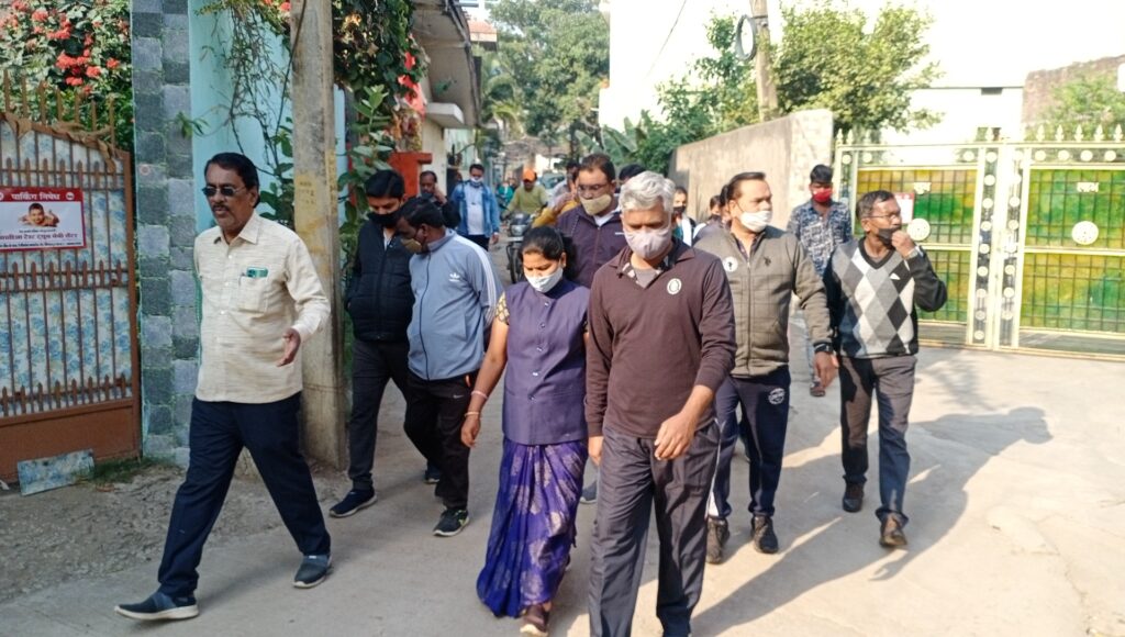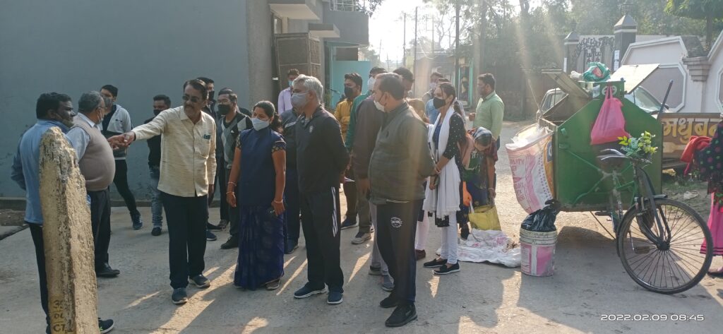 रायगढ़ / नगर निगम रायगढ़ द्वारा स्वच्छता सर्वेक्षण एवं सफाई अभियान के तहत आज वार्ड क्रमांक 16 में महापौर जानकी काट्जू निगम आयुक्त एस जयवर्धन वार्ड पार्षद सुभाष पांडेय एल्डरमेन विज्जु ठाकुर समेत नगर निगम टीम ने सघन निरीक्षण कर वार्ड की सफाई व्यवस्था का जायजा लिया साथ ही पार्षद एवं वार्ड वासियों द्वारा बताए गए अन्य समस्याओं को भी ध्यान में रखकर निराकरण हेतु आश्वासन देकर अधिकारियों को निर्देशित किया ।नगर निगम द्वारा लगातार सफाई अभियान के अंतर्गत वार्ड निरीक्षण किया जाता है,वही स्वच्छता सर्वेक्षण 2022 के मद्देनजर निगम की पूरी टीम स्थल पर उपस्थित होकर वार्डवासियों को