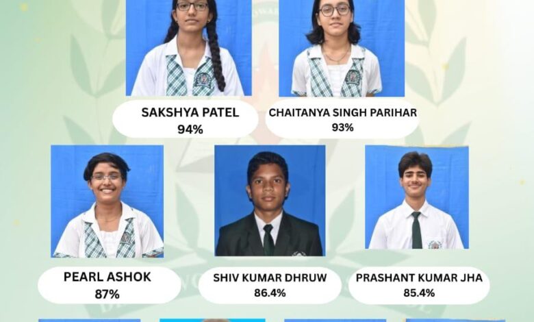 वही कक्षा 10 वीं के छात्र छात्राओं ने उत्कृष्ट प्रदर्शन दिखाया जैसे- साक्ष्या पटेल ने अंग्रेजी, हिंदी, विज्ञान में 92 अंक एवं सामाजिक विज्ञान में 98 प्राप्त किये, चैतन्या सिंह परिहार ने अंग्रेजी में 92, हिंदी में 96 अंक प्राप्त किये, पर्ल अशोक ने अंग्रेजी में 90 अंक प्राप्त किये, प्रशांत कुमार झा ने हिंदी में 91 अंक प्राप्त किये वहीं आर्टिफिशियल इंटिलिजेंस में साक्ष्या पटेल, चैतन्या सिंह परिहार, पर्ल अशोक, शिव कुमार ध्रुव, आदित्य डनसेना ने क्रमशः 98, 99, 97, 99, 91 अंक प्राप्त किये। ठीक इसी तरह कक्षा 12 वीं में गौरव वर्मा ने अंग्रेजी में 90 अंक, आई पी में 97 और फिजिकल एजुकेशन में 90 अंक प्राप्त किये, वृद्धि दुबे ने अंग्रेजी में 96 अंक, हिंदी में 93 अंक और फिजिकल एजुकेशन में 94 अंक प्राप्त किये, साहिल खान आई पी में 91 अंक प्राप्त किये, मोहम्मद फराज अली ने बिज़नेस स्टडीज में 93 अंक एवं आई पी में 90 प्राप्त किये।