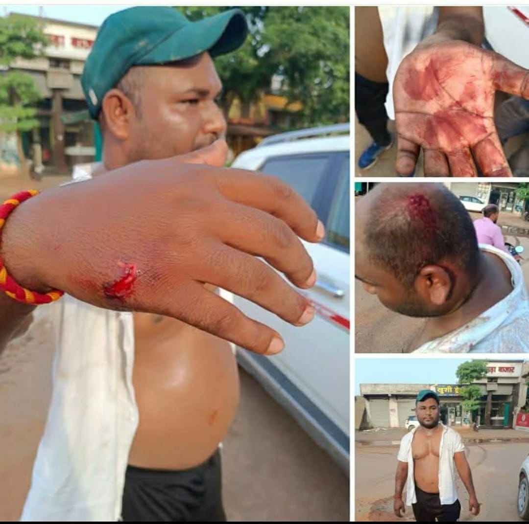 रायगढ़…घटना आज शाम की बताई जा रही है।पत्रकार शैलेन्द्र साहू अपने किसी मित्र से मिलने कोड़ा तराई गए हुए थे।वापसी के दौरान कोड़ातराई की मुख्य सड़क में कुछ बाइकर्स ने उनकी कार को ओवरटेक किया और कार के सामने बाइक अड़ाकर शैलेन्द्र को कार से बाहर खींच लिया।और बहुत बड़ा पत्रकार बनता है कहकर उन पर ताबड़तोड़ हमला कर दिया।अप्रत्याशित हुए हमले से शैलेन्द्र घबरा गया।इधर शैलेन्द्र ने बताया कि हमलावर सात से आठ लोग थे और उन्होंने किसी भारी चीज और ईंट से उस पर हमला किया है।जिससे उसके सिर में गंभीर चोटें आई है।बहरहाल घटना के कुछ घंटों के भीतर ही हमला करने वाले लोगों में से दो आरोपी को जूटमिल पुलिस ने हिरासत में ले लिया है।और आगे की कार्यवाही कर रही है।