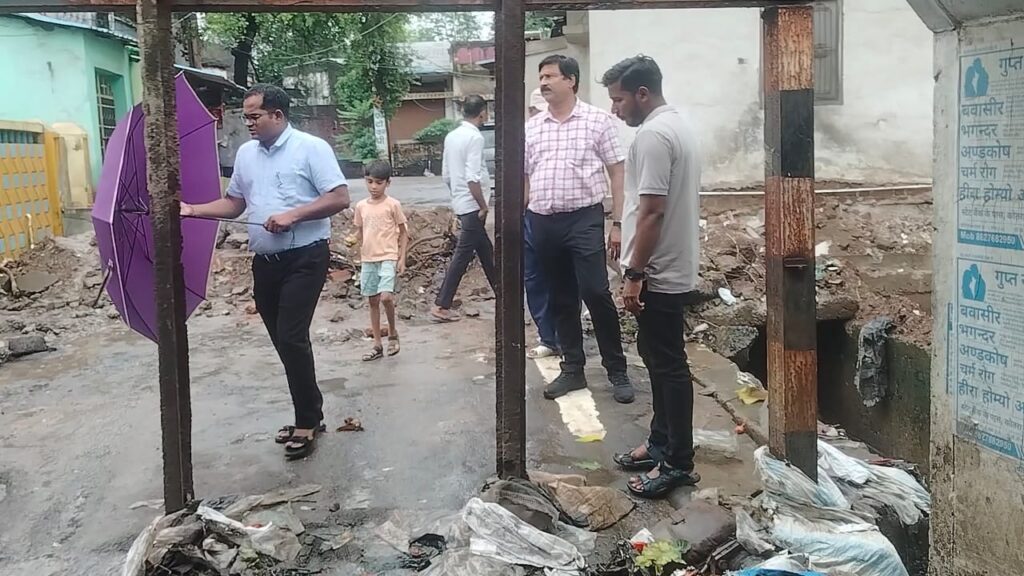 संबंधित चिन्हांकित सभी बड़े नाले एवं गली-मोहल्ले के नालियों में निगरानी रखने, उसमें किसी भी प्रकार के कचरे, झाड़ियां फसने एवं गाजा होने की स्थिति पर उसकी तत्काल सफाई करने के निर्देश सभी सफाई दरोगा दिए। इसके बाद कमिश्नर श्री क्षत्रिय ने रामनिवास टॉकीज के सड़क को काटकर बनाए गए कृत्रिम नाले निर्माण से पानी निकासी की स्थिति का जायजा लिया। इस दौरान उन्होंने नाले में ह्यूम पाइप डालने एवं सड़क के मरम्मत कार्य को शीघ्रता से करने के निर्देश दिए। सड़क काटने के दौरान यहां पानी सप्लाई पाइपलाइन भी क्षतिग्रस्त हो गया था, जिसे अंडरग्राउंड नाला निर्माण के हिसाब से पानी सप्लाई पाइपलाइन में किसी