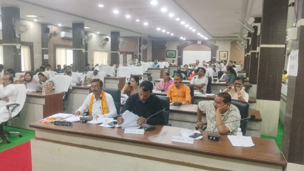 प्रस्तुतीकरण हुआ। इसके बाद आधे घंटे के लिए सभापति जी द्वारा भोजन अवकाश घोषित किया गया। भोजन अवकाश के उपरांत सभा में लाए गए प्रस्ताव पर चर्चा की गई। सामान्य सभा में कुल 13 प्रस्ताव रखे गए थे। इसमें प्रस्ताव क्रमांक 4 में मेजर रोड, सब अर्बन एरिया रोड, ड्रेनेज, स्ट्रीट लाइट, पॉन्ड लैक डेवलपमेंट, स्पोर्ट कंपलेक्स, न्यू मार्केट डेवलपमेंट, मल्टी लेवल पार्किंग, ट्रांसपोर्ट नगर, वाटर सप्लाई सीवरेज नेटवर्क, ट्रेड सेंटर, रूफटॉप सोलर एवं जंक्शन संबंधित 13 सब