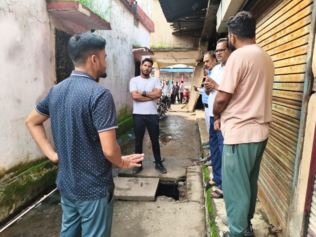 हटाने संबंधित निगम के कार्यों में सहयोग करने की अपील की। इस दौरान भवन विभाग के अधिकारियों को वहां स्थित नजूल जमीन को 152 प्रतिशत पर खरीददारी की सूची एवं अतिक्रमण की स्थिति की जानकारी देने निर्देशित किया गया। इसी तरह रामनिवास टॉकीज के सामने नाला सफाई का जायजा लिया गया। इस दौरान भी होटल राजमहल एवं नाले से लगे अन्य मकान के शौचालय का पाइप लाइन सीधा नाले में छोड़ने और नाले से लगे दीवारों के जर्जर होने संबंधित बातें सामने आई, जिसपर होटल राजमहल के