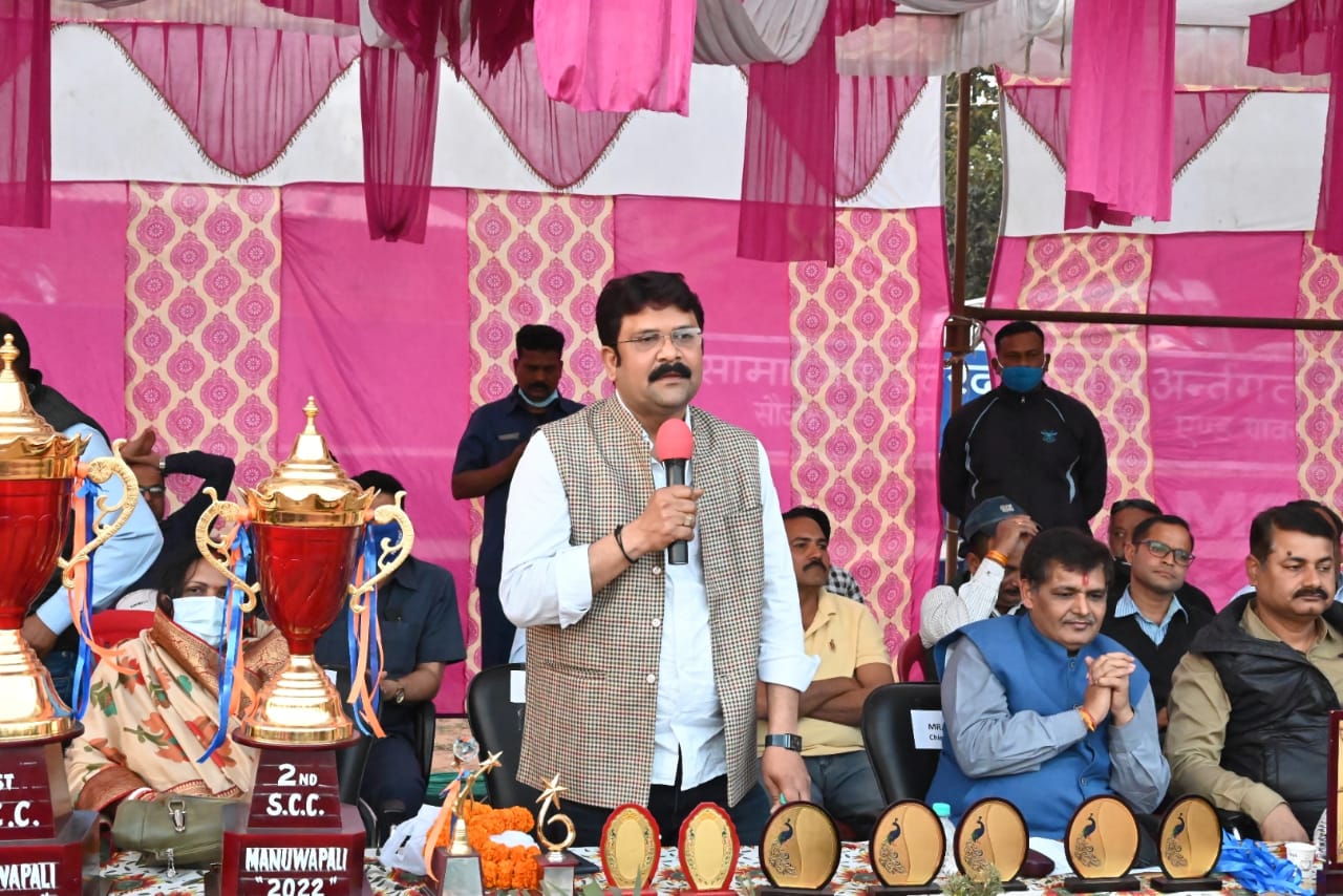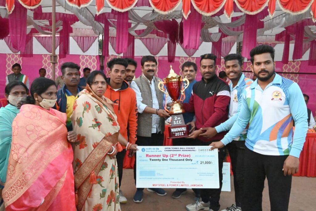 रायगढ़।रायगढ़ पूर्वांचल क्षेत्र के ग्राम मनुवापाली में आयोजित टेनिस बाल क्रिकेट प्रतियोगिता का समापन रायगढ़ के युवा विधायक प्रकाश नायक के मुख्य आतिथ्य में संपन्न हुआ।इस प्रतियोगिता के विजेता टीम लिटिल स्टार झारसुगुड़ा व उपविजेता टीम मिलर इलेवन कोटमार को विधायक श्री नायक ने नगद राशि व ट्रॉफी से पुरस्कृत कर उन्हें बधाई दी।इस मौके पर उन्होंने खेल भावना के साथ खेले जाने पर खिलाडियों के ध्यान आकृष्ट कराया।