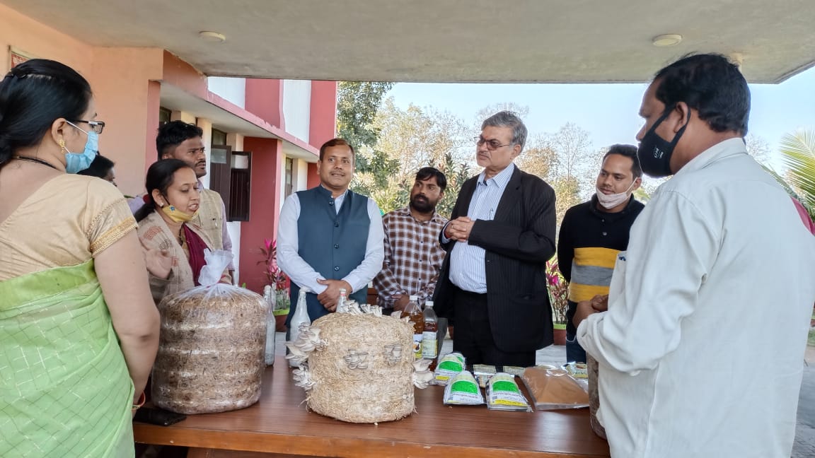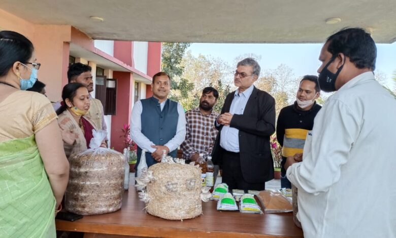 कुलपति डॉ.सेंगर द्वारा मौके पर वृक्षारोपण भी किया गया। तत्पश्चात भारतीय कृषि अनुसंधान द्वारा प्रायोजित एवं वित्त पोषित पशुधन व्यवसाय एवं पशुप्रबंधन विषय पर तीन दिवसीय प्रशिक्षण का शुभारंभ करते हुए प्रगतिशील कृषकों एवं गौ-पालकों को उचित दिशा-निर्देश एवं मार्गदर्शन देते हुए कहा कि जिले के कृषकों को रोजगार एवं आमदनी बढ़ाने हेतु कृषि विज्ञान केन्द्र से जुड़कर कार्य करना चाहिए। उन्होंने पशु पालकों को डेयरी व्यवसाय से संबंधित दुग्ध प्रौद्योगिकी एवं दुग्ध उत्पादन के प्रसंस्करण के साथ-साथ उन्नत बाजार व्यवस्था के बारे में विस्तार से बताया। कुलपति डॉ.सेंगर ने केन्द्र परिसर में केन्द्र एवं संबंधित प्रगतिशील महिला कृषक श्रीमती उर्मिला सिदार द्वारा लगाये जैविक आदानों एवं उत्पादनों की स्टॉल एवं प्रदर्शनी की भूरी-भूरी प्रशंसा की। साथ ही केन्द्र के वैज्ञानिक को श्रीमती सिदार द्वारा किये जा रहे प्रयासों को प्रकाशित एवं प्रसारित करने हेतु दिशा-निर्देश दिये। साथ ही किसान उत्पादक संघ के अध्यक्ष श्री सीताराम पटेल द्वारा लगाये मसाला वर्गीय फसलों के स्टाल का अवलोकन किया। केन्द्र द्वारा प्रशिक्षित ग्रामीण युवक श्री राजेश प्रधान एवं उनकी धर्मपत्नी श्रीमती कविता द्वारा लगाये मशरूम बीज की प्रदर्शनी की तारीफ करते हुए उनसे चर्चा की।