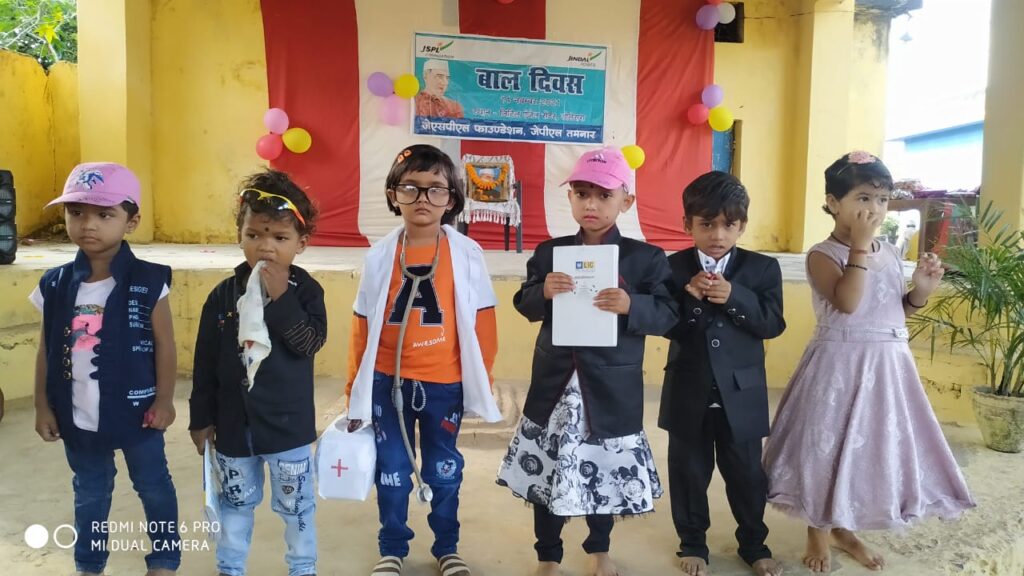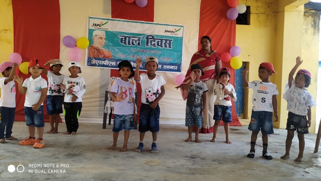 तमनार -जेएसपीएल फाउंडेशन जेपीएल तमनार द्वारा भारत के प्रथम प्रधानमंत्री पंडित जवाहरलाल नेहरू की जयंती 14 नवंबर के अवसर पर संचालित 6 प्ले स्कूल -लिटिल एंजल सेंटर डोलेसरा, सालिहाभांठा, कुंजेमुरा, लिबरा, बुड़ीया, छर्राटांगर, ओपी जिंदल स्कूल राबो एवं शासकीय माध्यमिक विद्यालय झींकाबाहल में बाल दिवस कार्यक्रम का आयोजन हर्षोल्लास के साथ किया गया। इस अवसर पर इन संस्थानों में अध्ययनरत नौनिहाल बच्चों व छात्र-छात्राओं ने विविध सांस्कृतिक और साहित्यिक कार्यक्रम प्रस्तुत कर चाचा नेहरू को अंतत से याद किया। जेएसपीएल फाउंडेशन जेपीएल तमनार क्षेत्र में आधारभूत प्रारंभिक व गुणवत्तापूर्ण शिक्षा सुनिश्चित करने के लिए क्षेत्र के विविन्न ग्रामों में 6 लिटिल एंजेल सेंटर का संचालन ग्राम डोलेसरा, सलीहाभाठा, कुंजेमुरा, बुड़ीया एवं छर्राटांगर में कर रही है।संस्था में अध्ययनरत नन्हे-मुन्ने बच्चों एवं उनमें निहित प्रतिभा को
