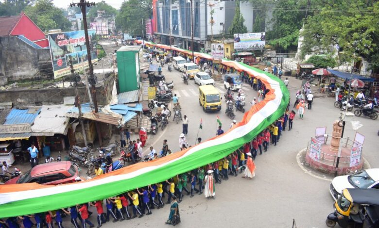रायगढ़ /15 अगस्त स्वतंत्रता दिवस से पहले रायगढ़ शहर पूरी तरह देशभक्ति के भाव में सराबोर हो गया। यह अवसर था संस्कार पब्लिक स्कूल , विप्र फाउंडेशन और नव निर्माण संकल्प समिति के संयुक्त तत्वाधान में निकाले गए तिरंगा यात्रा का। मंगलवार को सुबह 10:00 बजे नटवर स्कूल से, रायगढ़ के प्रसिद्ध शिक्षाविद समाजसेवी रामचंद्र शर्मा के नेतृत्व में ऐतिहासिक तिरंगा यात्रा निकाली गई। तिरंगा यात्रा को रायगढ़ के कलेक्टर मयंक चतुर्वेदी ने झंडा दिखाकर रवाना किया। इस अवसर पर रायगढ़ कलेक्टर ने तिरंगा यात्रा की सराहना करते हुए लोगों को देश प्रेम और तिरंगा के प्रति जागरूक होने की अपील की है।