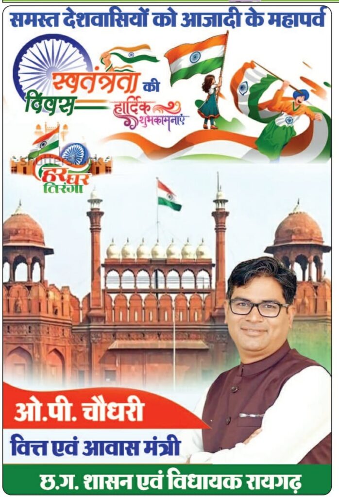 रायगढ़, 15 अगस्त 2025/ स्वतंत्रता दिवस के अवसर पर वित्त मंत्री श्री ओ.पी.चौधरी ने जिला मुख्यालय रायगढ़ में 49.99 लाख रुपये की लागत से निर्मित ‘दीदी सदन’ का लोकार्पण किया। वित्त मंत्री श्री चौधरी ने कहा कि मुख्यमंत्री श्री विष्णुदेव साय के नेतृत्व में हमारी सरकार माताओं-बहनों को सशक्त और आत्मनिर्भर बनाने के लिए निरंतर प्रतिबद्ध है और विभिन्न योजनाओं के माध्यम से उनके विकास के लिए समर्पित है। उन्होंने कहा कि राज्य सरकार गठन के बाद से महिला हितैषी नीतियों को प्राथमिकता दी गई है। उन्होंने प्रधानमंत्री नरेंद्र मोदी की लखपति दीदी योजना, पीडीएस दुकानों का संचालन महिला समूहों को सौंपने तथा रेडी-टू-ईट कार्यक्रम के विस्तार जैसी पहल का उल्लेख किया।