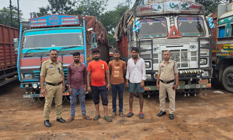 रायगढ़– पुलिस अधीक्षक दिव्यांग कुमार पटेल के दिशा निर्देशन और डीएसपी सुशांतो बनर्जी के मार्गदर्शन पर पूंजीपथरा थाना पुलिस ने अवैध कबाड़ परिवहन पर बड़ी कार्रवाई करते हुए कल सुबह दो 12 चक्का ट्रक और दो माजदा वाहन से भारी मात्रा में लोहे का स्क्रैप जप्त किया है। थाना प्रभारी निरीक्षक राकेश मिश्रा के नेतृत्व में सालासर चौक गेरवानी और सामारूमा मंदिर के पास सड़क पर घेराबंदी कर यह कार्रवाई की गई। पकड़े गए वाहनों में करीब 49.44 टन लोहे का स्क्रैप भरा हुआ था, जिसकी अनुमानित कीमत 13 लाख 76 हजार रुपए आंकी गई है।