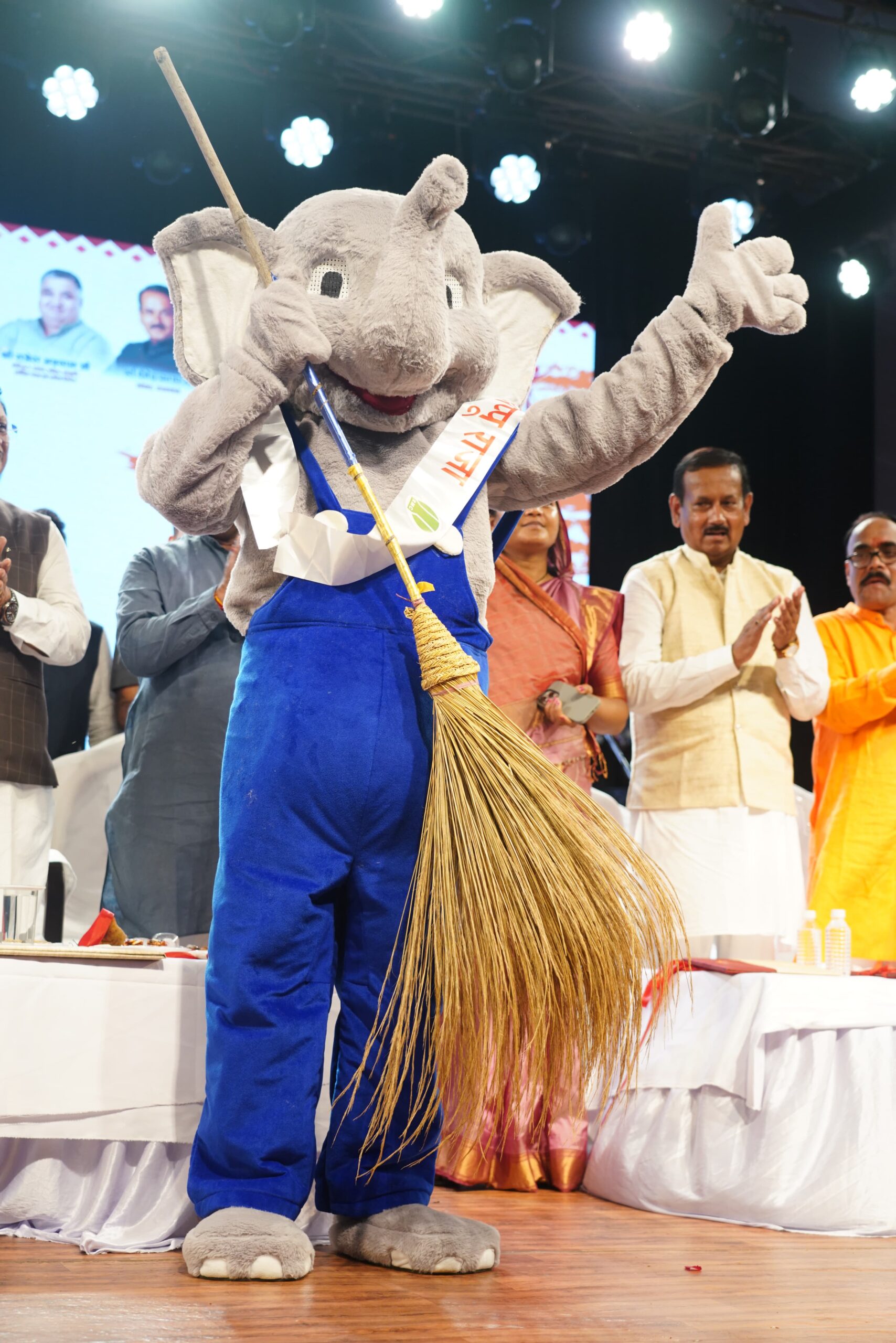 रायगढ़/छत्तीसगढ़ राज्य की रजत जयंती वर्षगांठ के अवसर पर रायगढ़ में आयोजित चक्रधर समारोह के अंतिम दिवस प्रदेश के मुख्यमंत्री श्री विष्णु देव साय ने नगर निगम रायगढ़ में अभिनव पहल स्वच्छता जागरूकता के शुभंकर “अप्पू राजा” लोकार्पित किया। इस पहल का उद्देश्य “सुग्घर रायगढ़, आरुग रायगढ़” की परिकल्पना को मूर्त रूप देना और शहर को स्वच्छ, स्वस्थ एवं आकर्षक स्वरूप प्रदान करना है। इस अवसर पर उप मुख्यमंत्री श्री अरुण साव, वित्त मंत्री श्री ओ.पी. चौधरी, महिला एवं बाल विकास मंत्री श्रीमती लक्ष्मी राजवाड़े, राज्यसभा सांसद श्री देवेंद्र प्रताप सिंह, लोकसभा सांसद श्री राधेश्याम राठिया, महापौर श्री जीवर्धन चौहान सहित जनप्रतिनिधि, अधिकारी और नागरिकगण उपस्थित थे।
