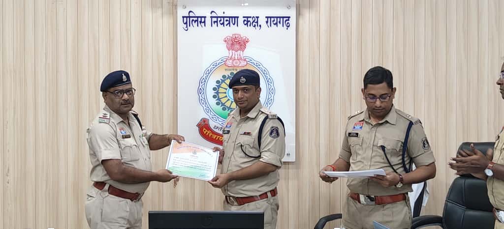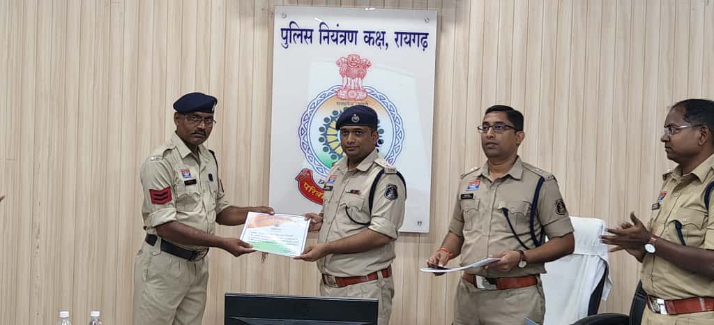 रायगढ़ । पुलिस अधीक्षक श्री दिव्यांग कुमार पटेल ने आज पुलिस कंट्रोल रूम में जिले के राजपत्रित अधिकारियों, थाना और चौकी प्रभारियों के साथ अपराध समीक्षा बैठक की। बैठक की शुरुआत में गत माह अपराध अनावरण और क्राइम डिटेक्शन में सराहनीय कार्य करने वाले पुलिस अधिकारी एवं कर्मचारियों को प्रशस्ति पत्र देकर सम्मानित किया गया।