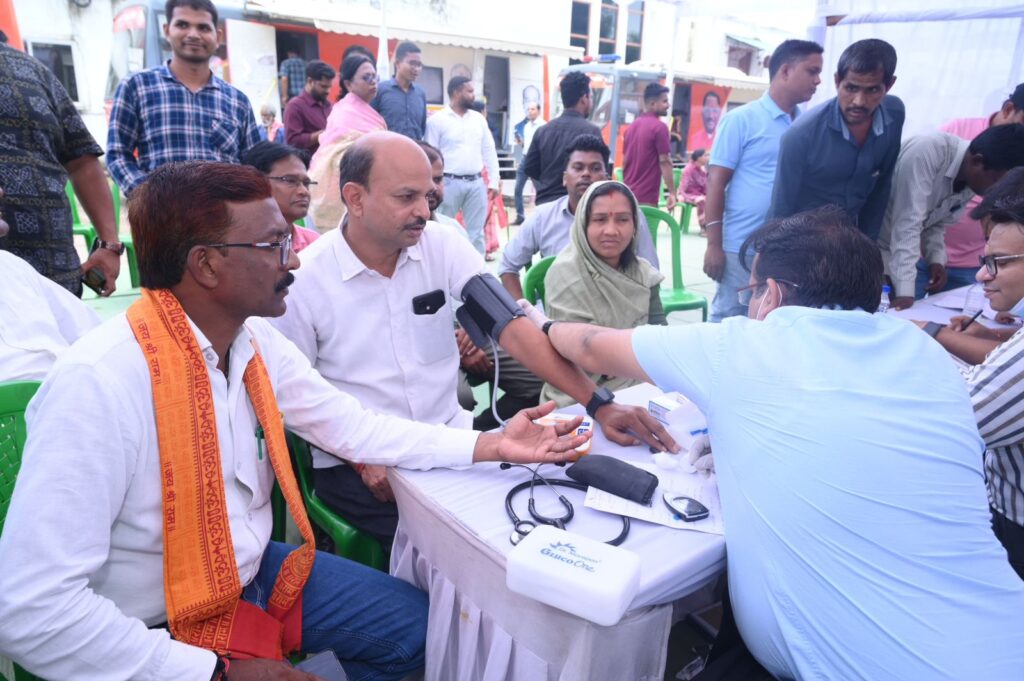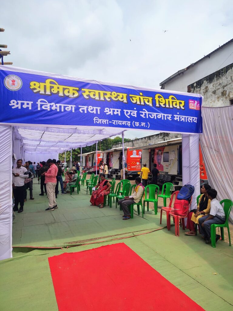 रायगढ़/इस शिविर में लगभग 1200 श्रमिकों का निःशुल्क स्वास्थ्य परीक्षण किया गया। शिविर में सामान्य स्वास्थ्य परीक्षण के अतिरिक्त रक्तचाप, मधुमेह, हीमोग्लोबिन एवं नेत्र परीक्षण जैसी विशेष जाँचें भी की गईं। विशेष