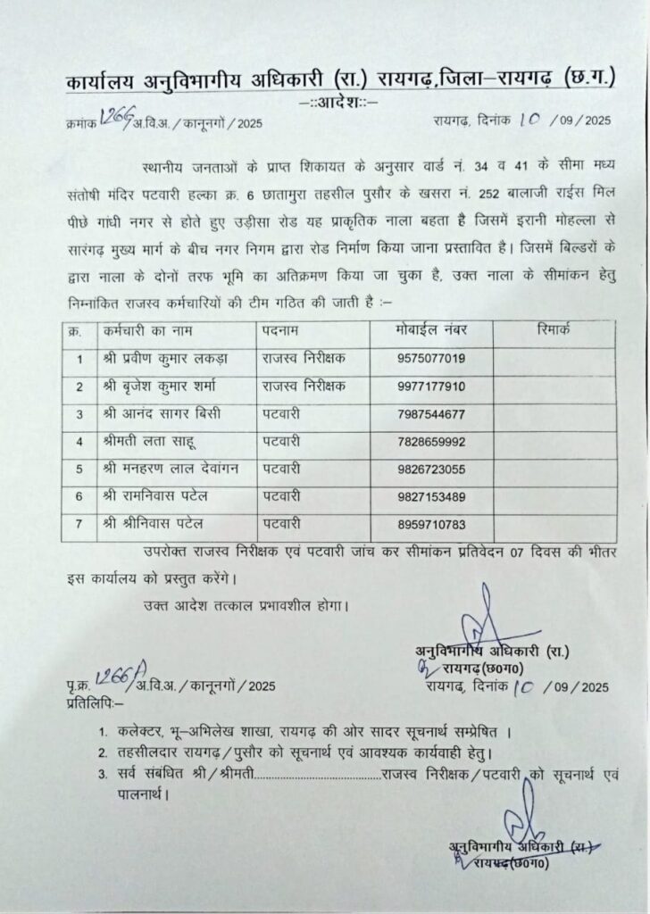 रायगढ़.. छातामुड़ा क्षेत्र में अनुभव बिल्डर्स द्वारा की जा रही मनमानी पर प्रशासन ने अब तक कोई भी ठोस कार्यवाही नहीं की है।जबकि दूसरी तरफ बिल्डर प्रशासन को चुनौती देते हुए विवादित नाले पर किए गए अतिक्रमण पर बाउंड्री वॉल भी खड़ा कर दिया है।